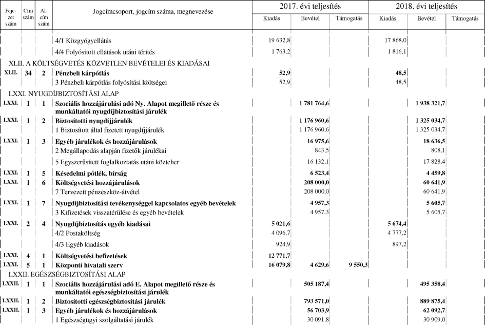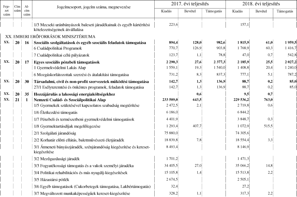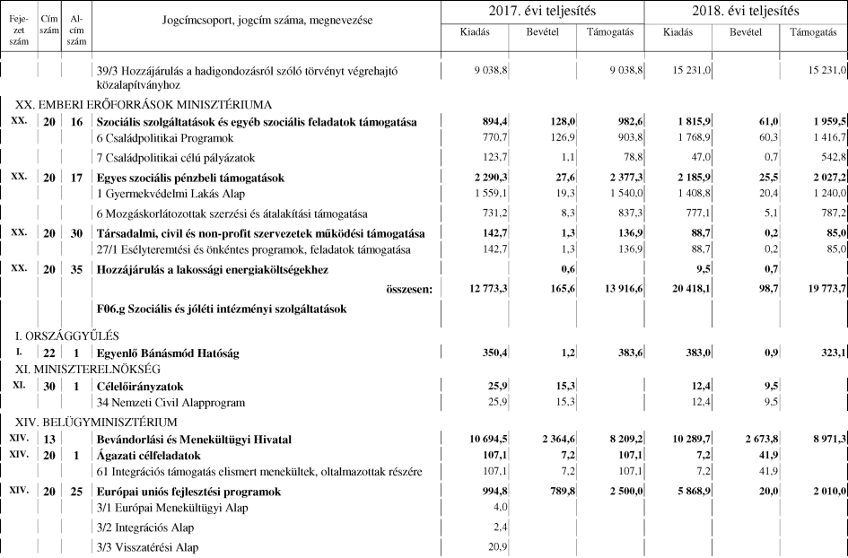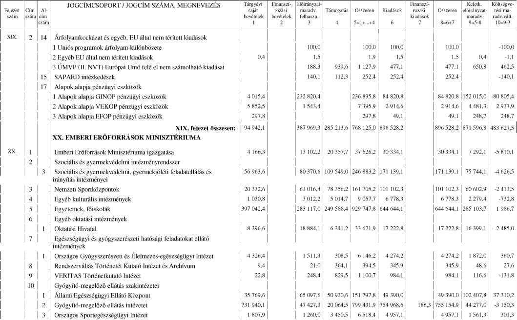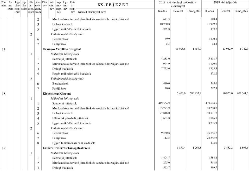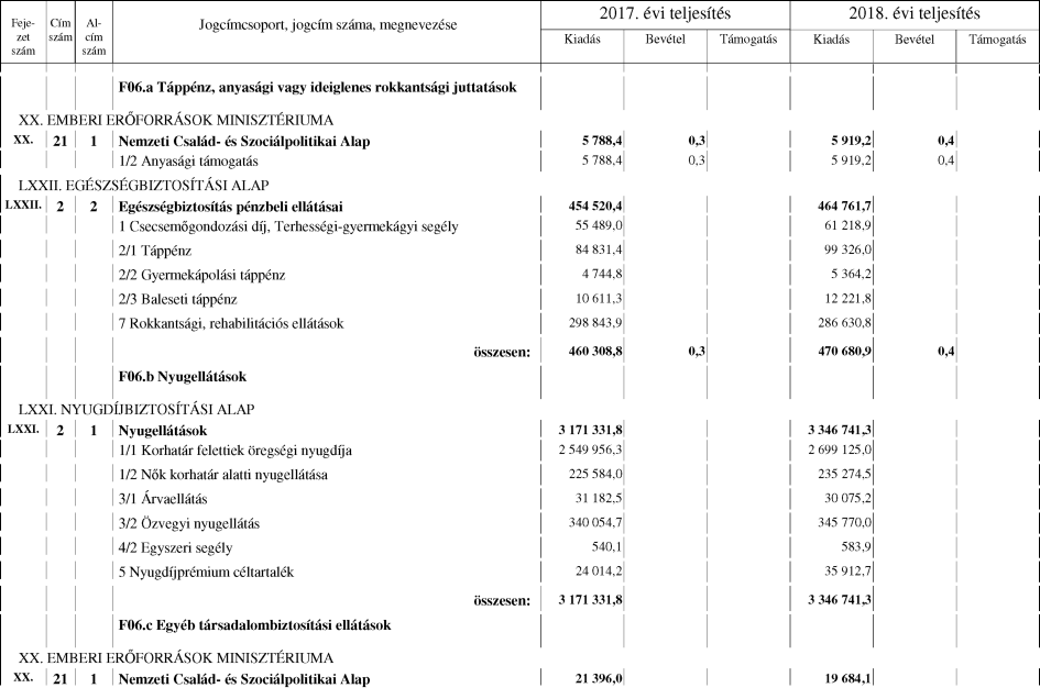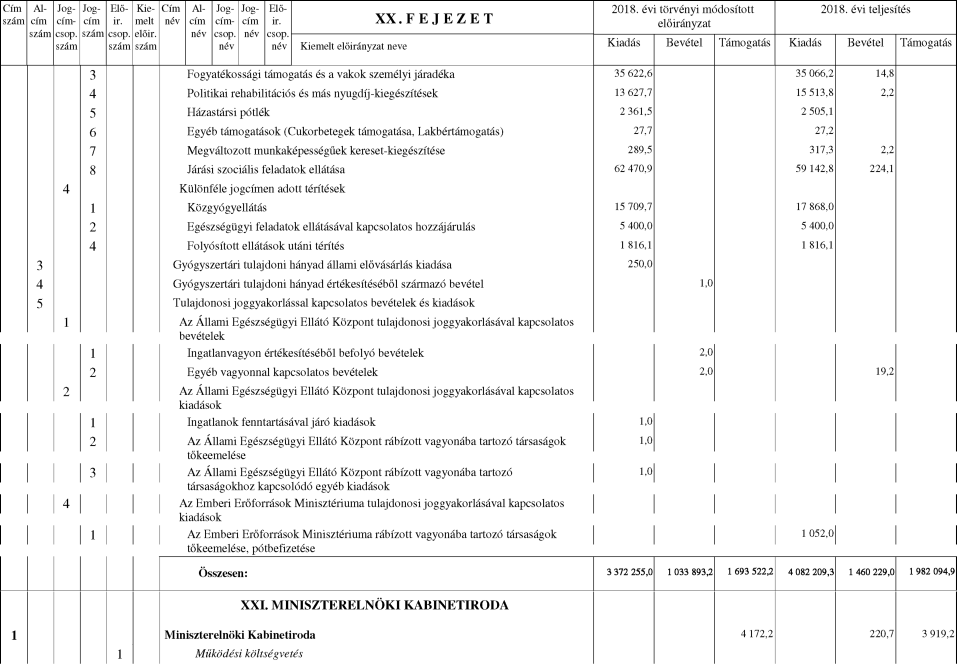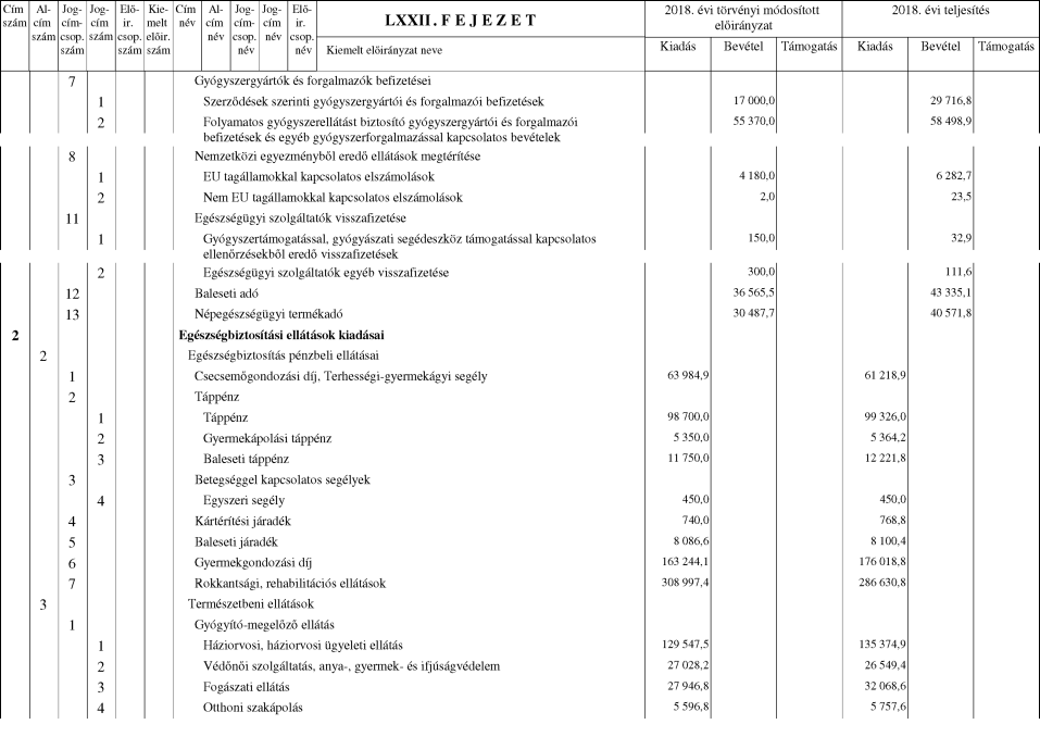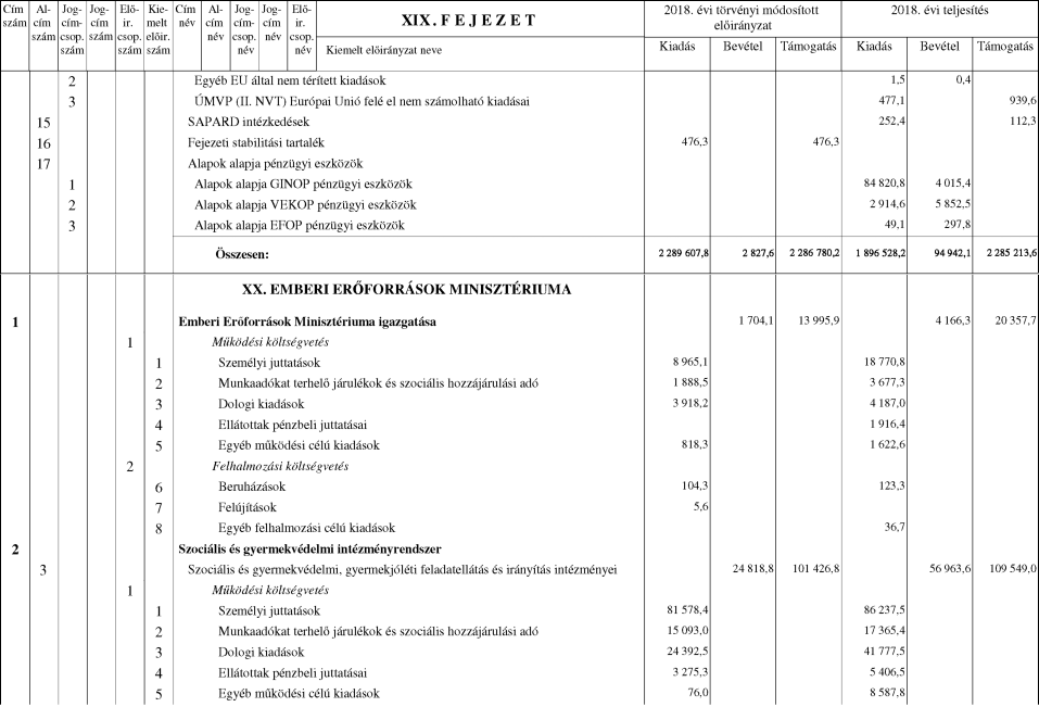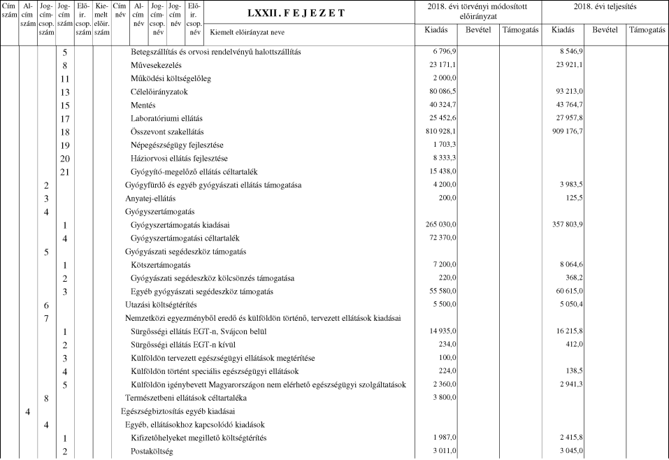 Az Országgyűlés elrendeli, hogy a társadalombiztosítás pénzügyi alapjainak közreműködésével az Emberi Erőforrások Minisztériuma (a továbbiakban: EMMI) fejezet, A költségvetés közvetlen bevételei és kiadásai fejezet terhére finanszírozott ellátások, valamint a közjogi méltóságok hozzátartozói részére járó nyugellátások megtérítésének és kiadásainak különbözeteként 2019. december 31-éig