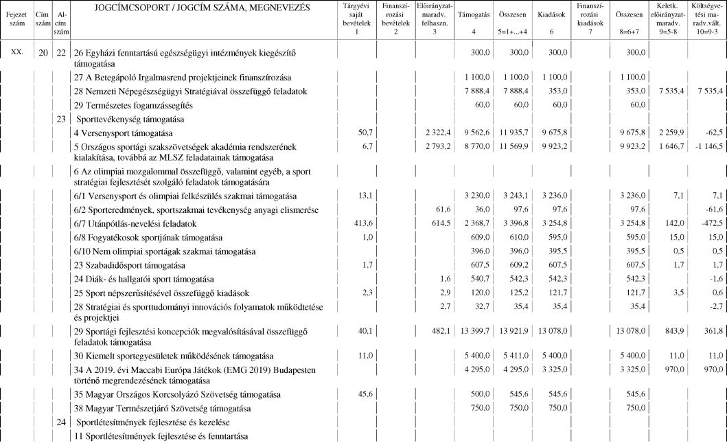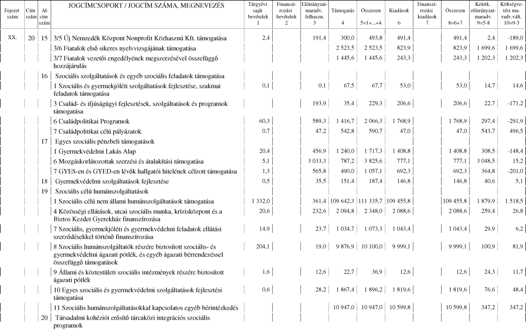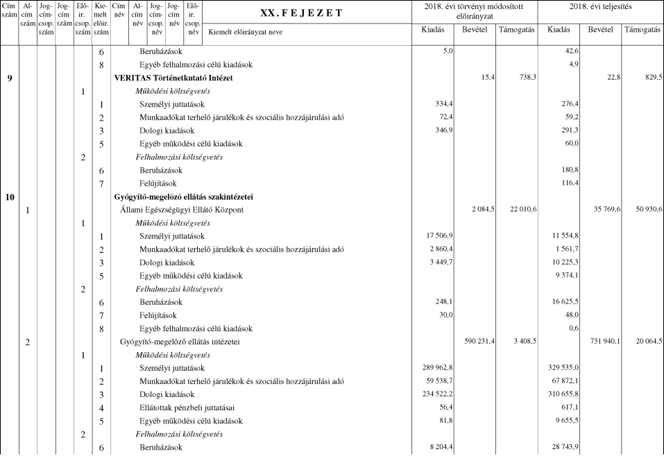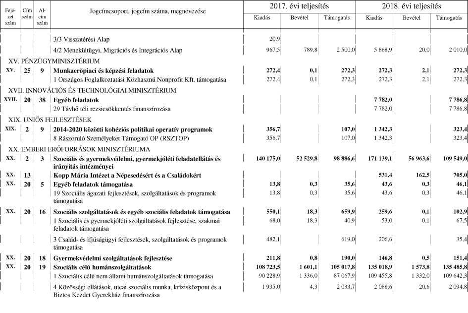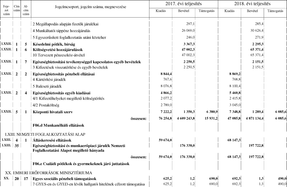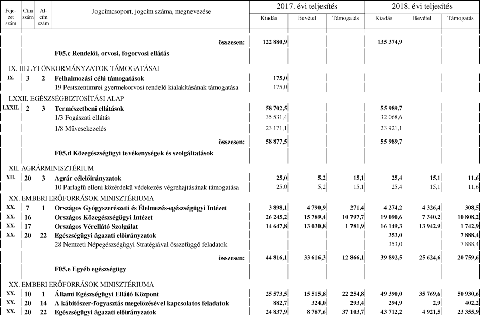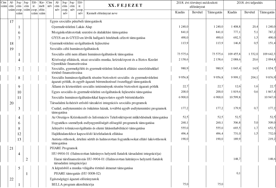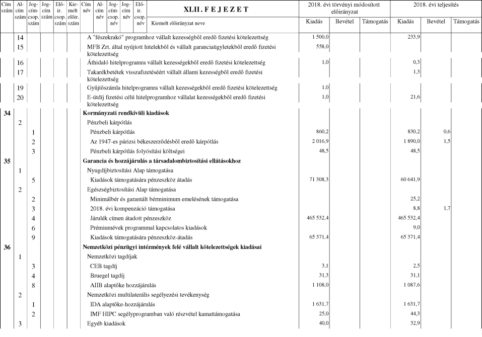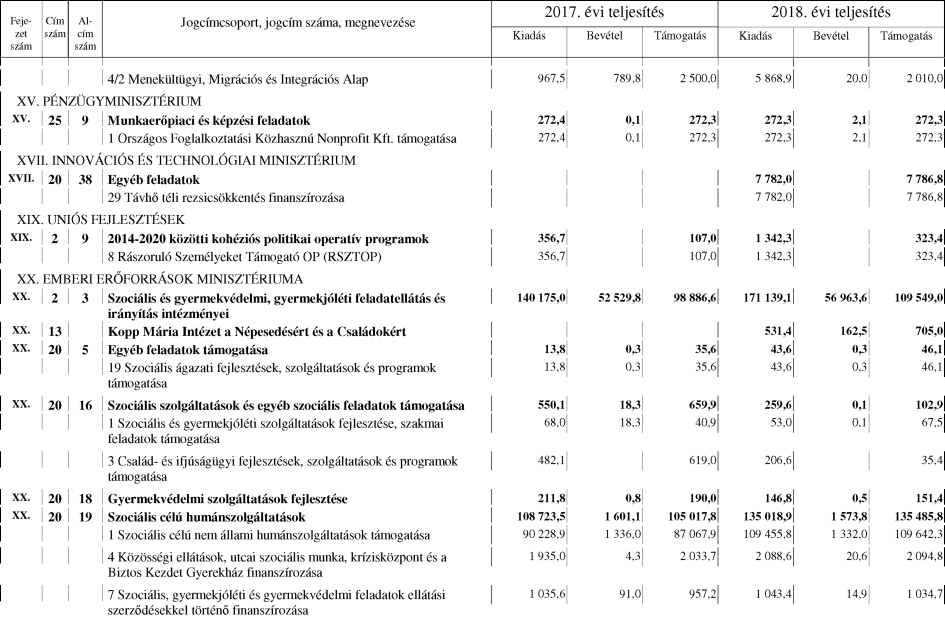 Az Országgyűlés elrendeli, hogy a társadalombiztosítás pénzügyi alapjainak közreműködésével az Emberi Erőforrások Minisztériuma (a továbbiakban: EMMI) fejezet, A költségvetés közvetlen bevételei és kiadásai fejezet terhére finanszírozott ellátások, valamint a közjogi méltóságok hozzátartozói részére járó nyugellátások megtérítésének és kiadásainak különbözeteként 2019. december 31-éig
