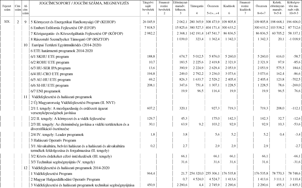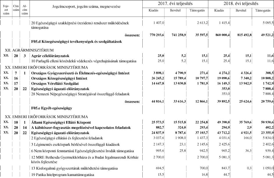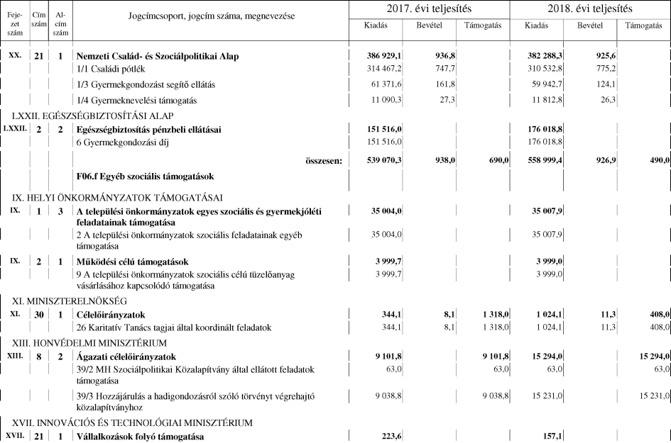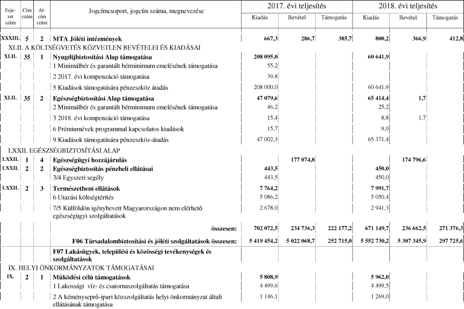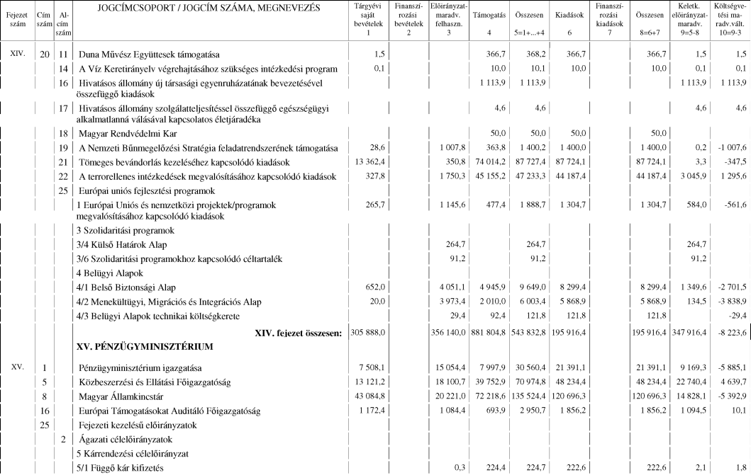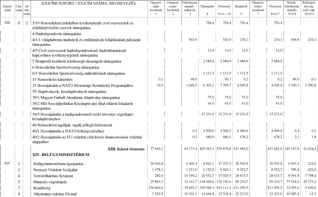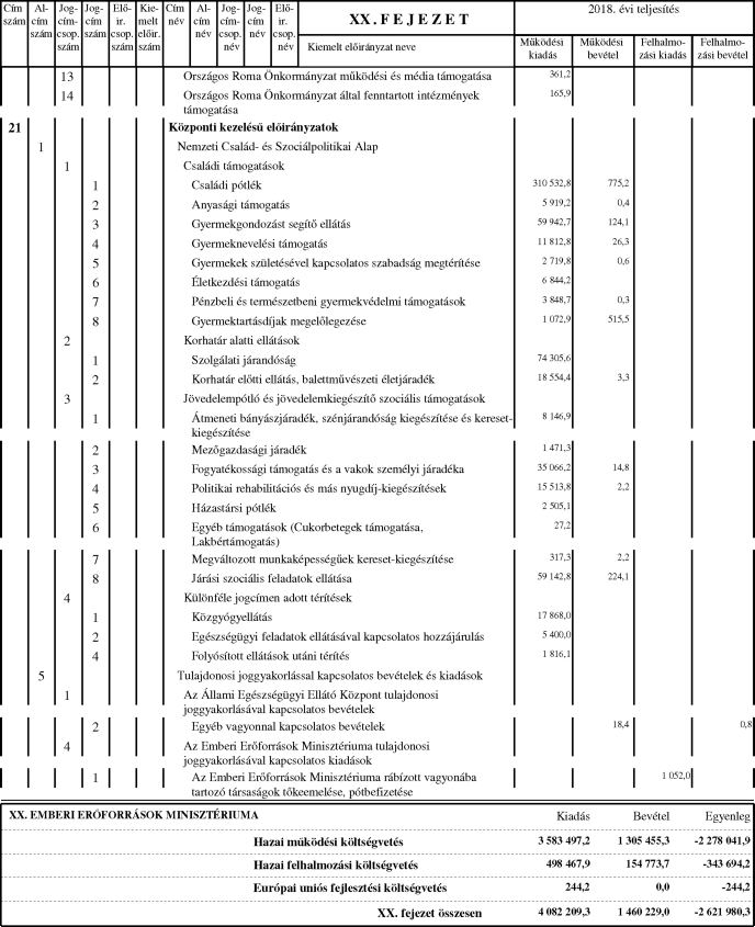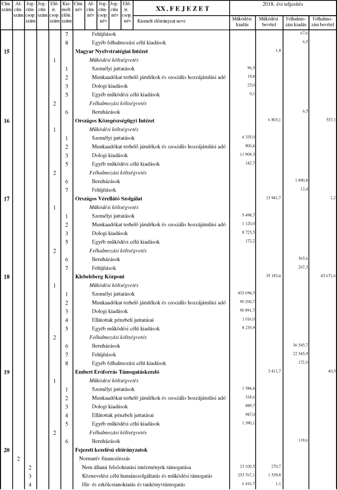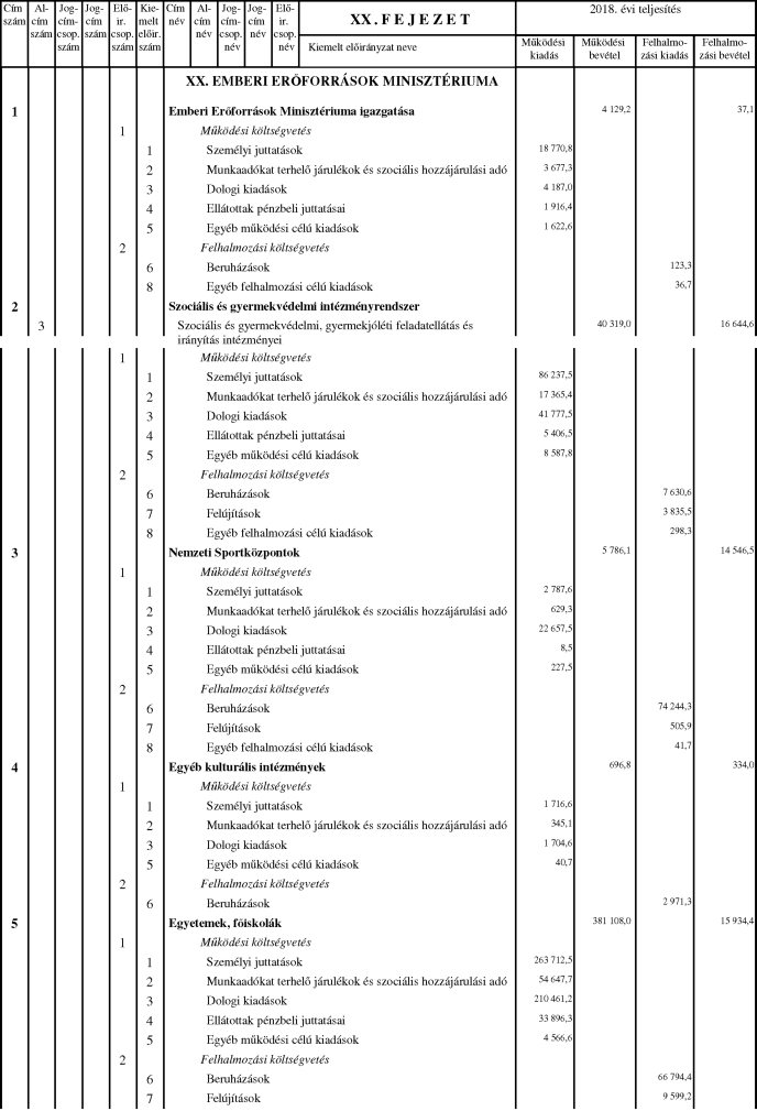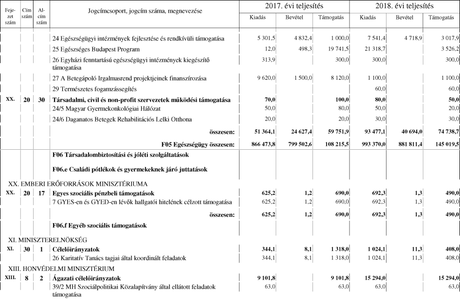 Az Országgyűlés elrendeli, hogy a társadalombiztosítás pénzügyi alapjainak közreműködésével az Emberi Erőforrások Minisztériuma (a továbbiakban: EMMI) fejezet, A költségvetés közvetlen bevételei és kiadásai fejezet terhére finanszírozott ellátások, valamint a közjogi méltóságok hozzátartozói részére járó nyugellátások megtérítésének és kiadásainak különbözeteként 2019. december 31-éig