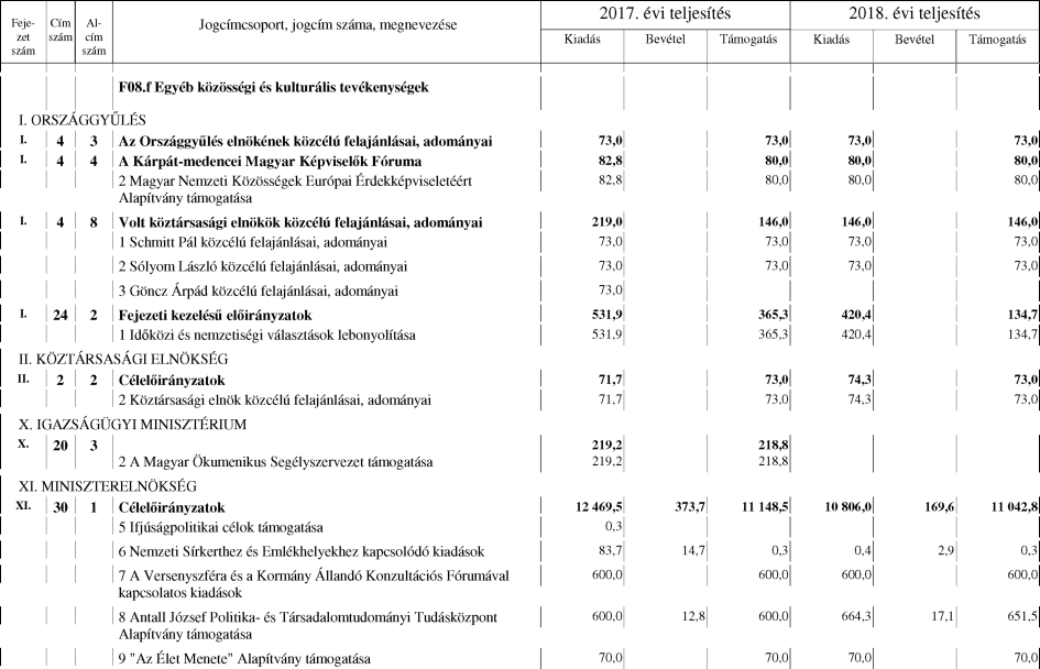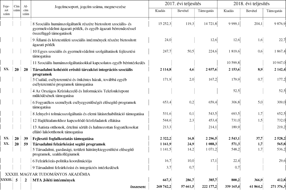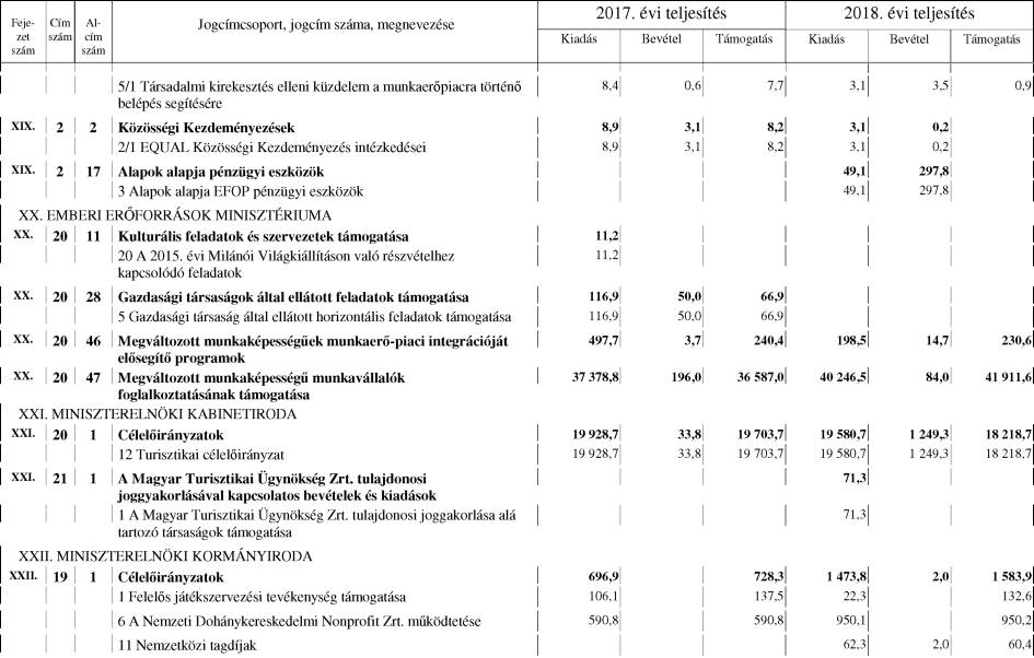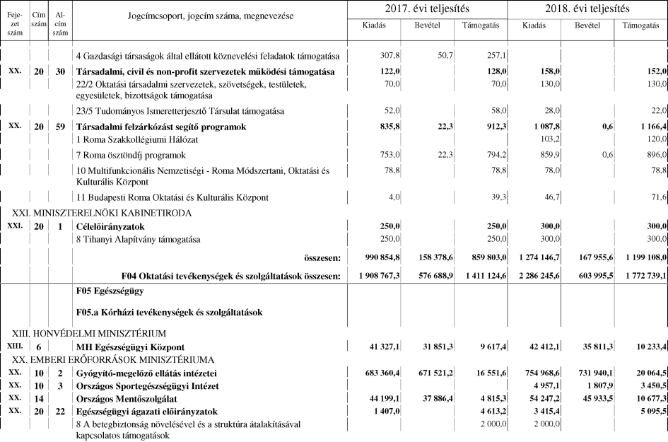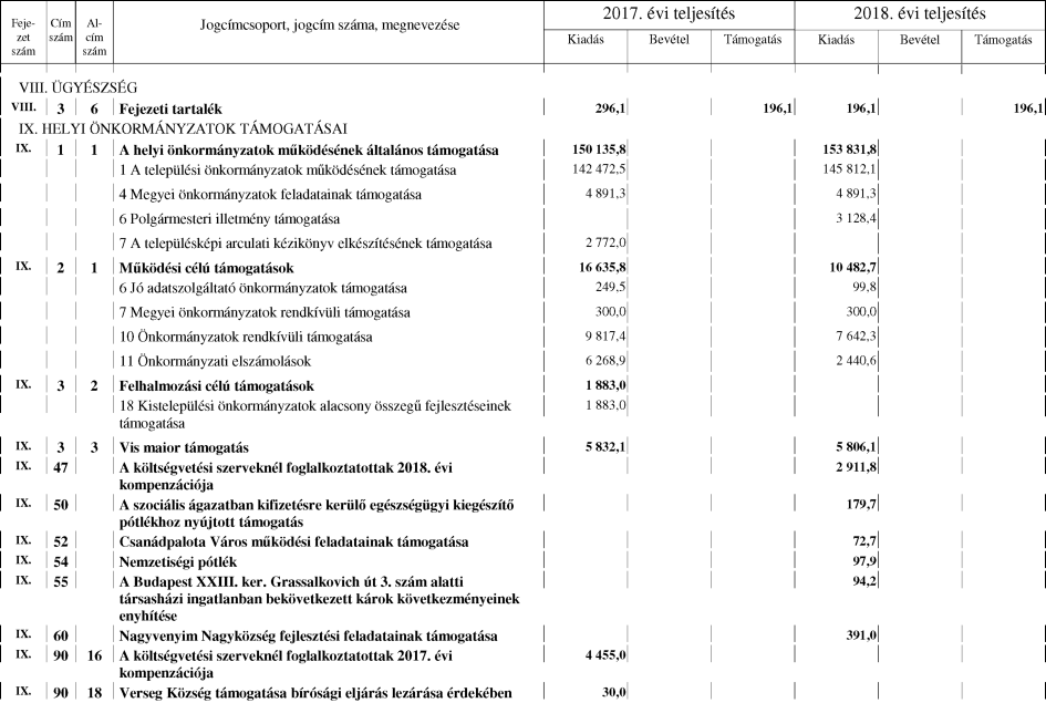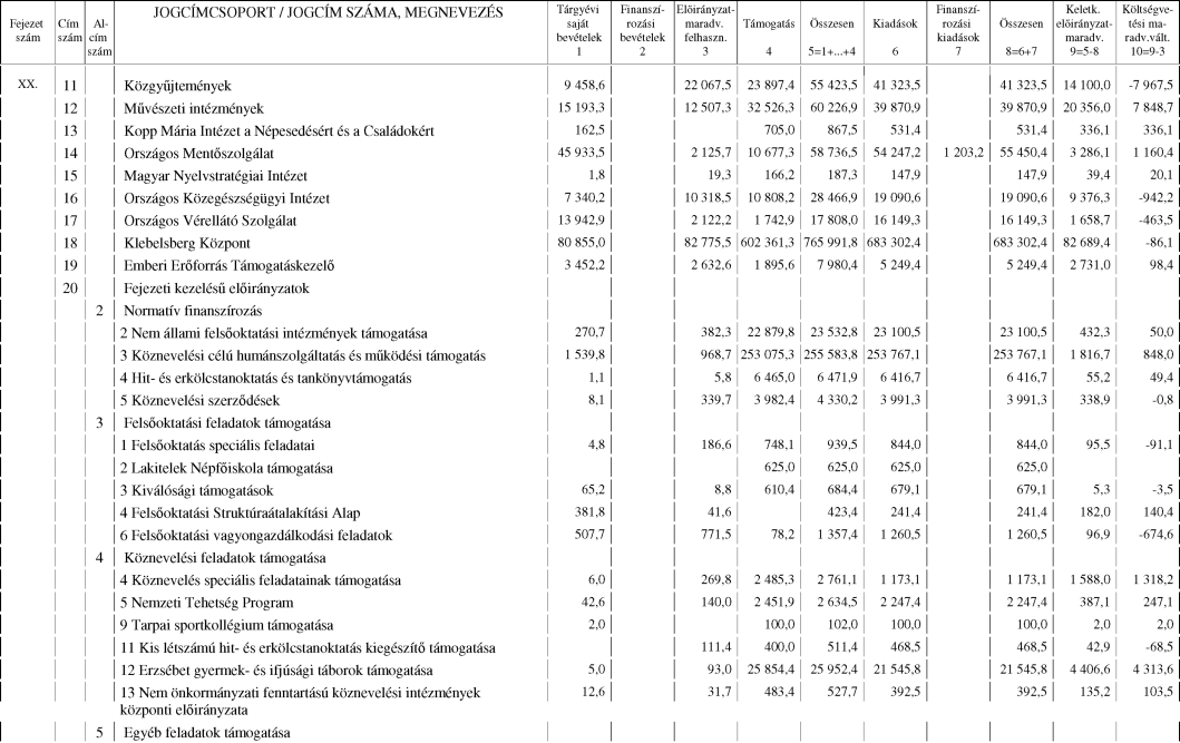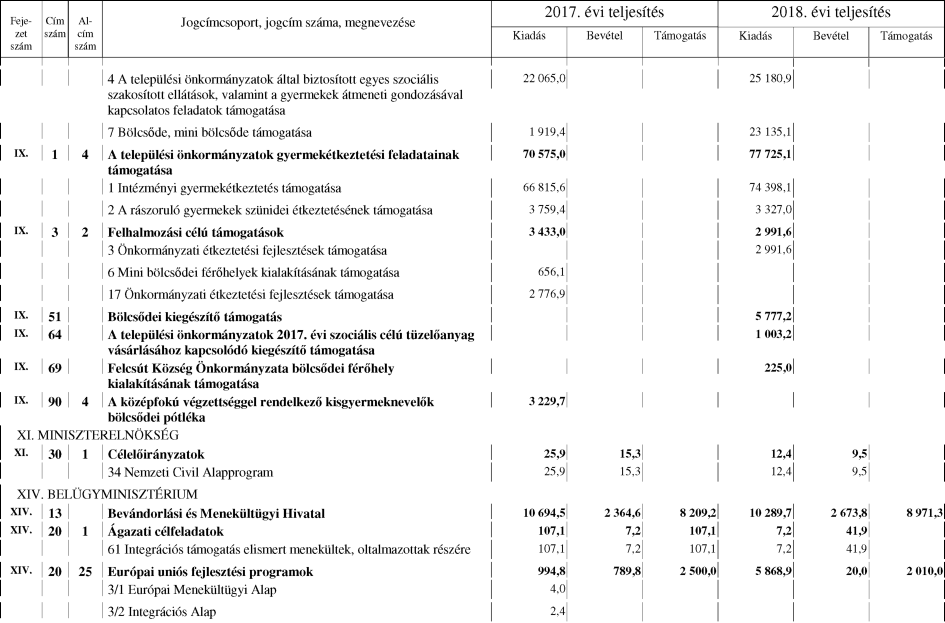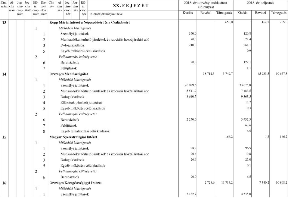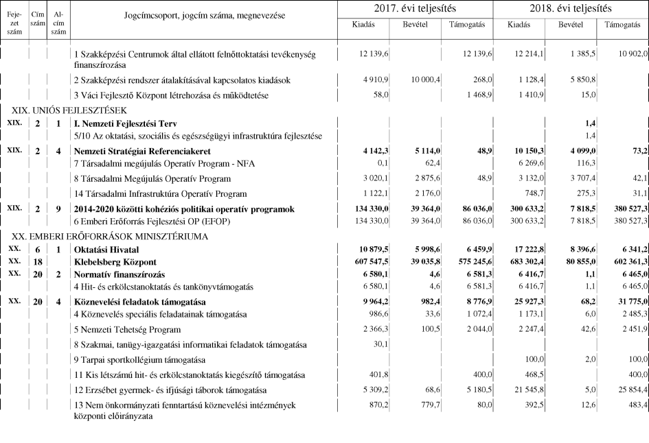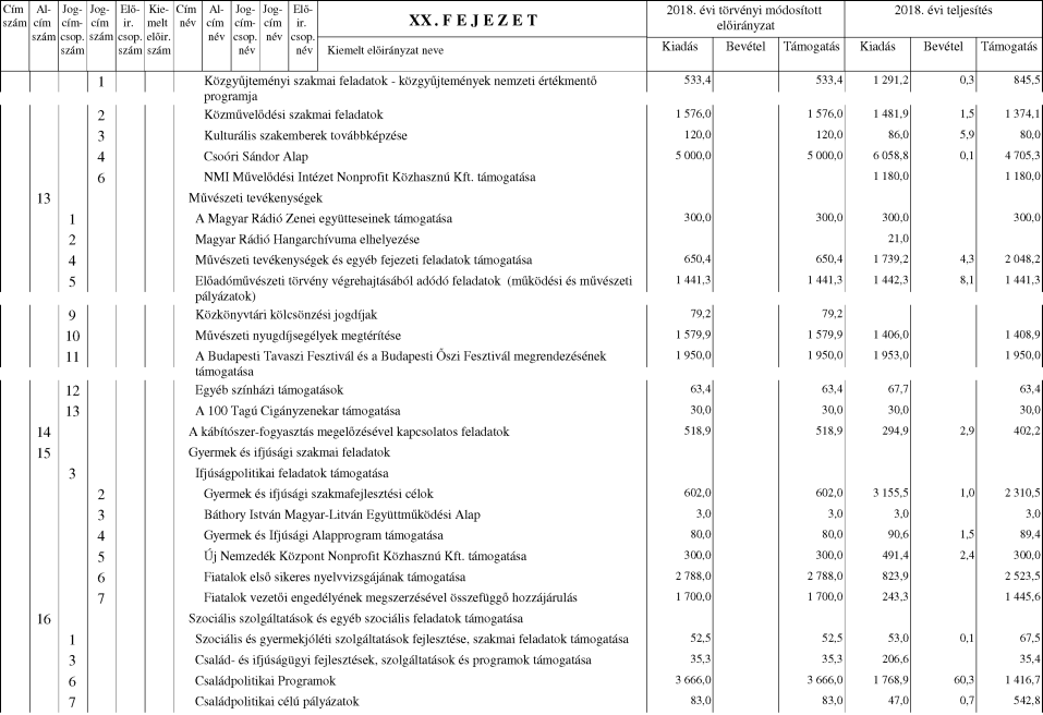 Az Országgyűlés elrendeli, hogy a társadalombiztosítás pénzügyi alapjainak közreműködésével az Emberi Erőforrások Minisztériuma (a továbbiakban: EMMI) fejezet, A költségvetés közvetlen bevételei és kiadásai fejezet terhére finanszírozott ellátások, valamint a közjogi méltóságok hozzátartozói részére járó nyugellátások megtérítésének és kiadásainak különbözeteként 2019. december 31-éig