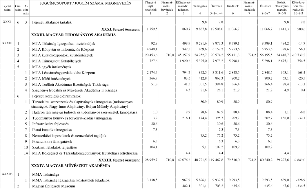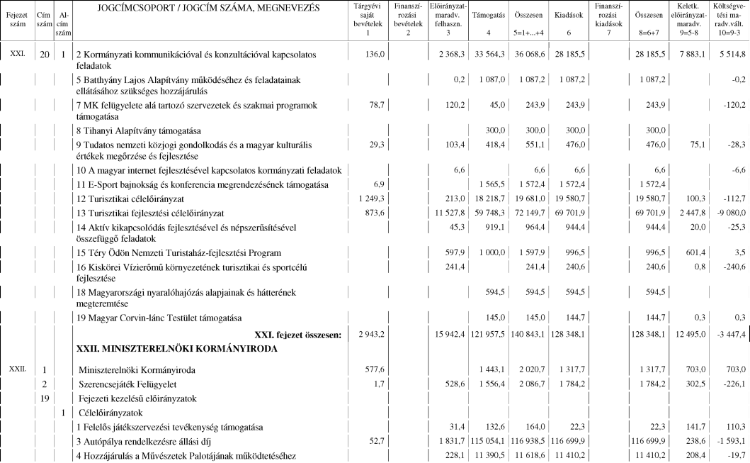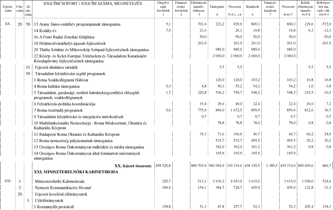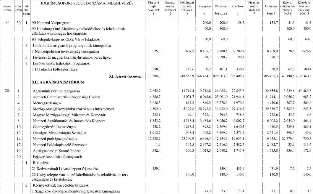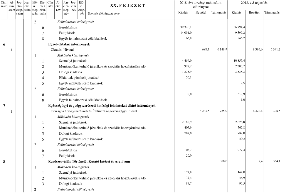 Költségvetési szervek és fejezeti kezelésű előirányzatok