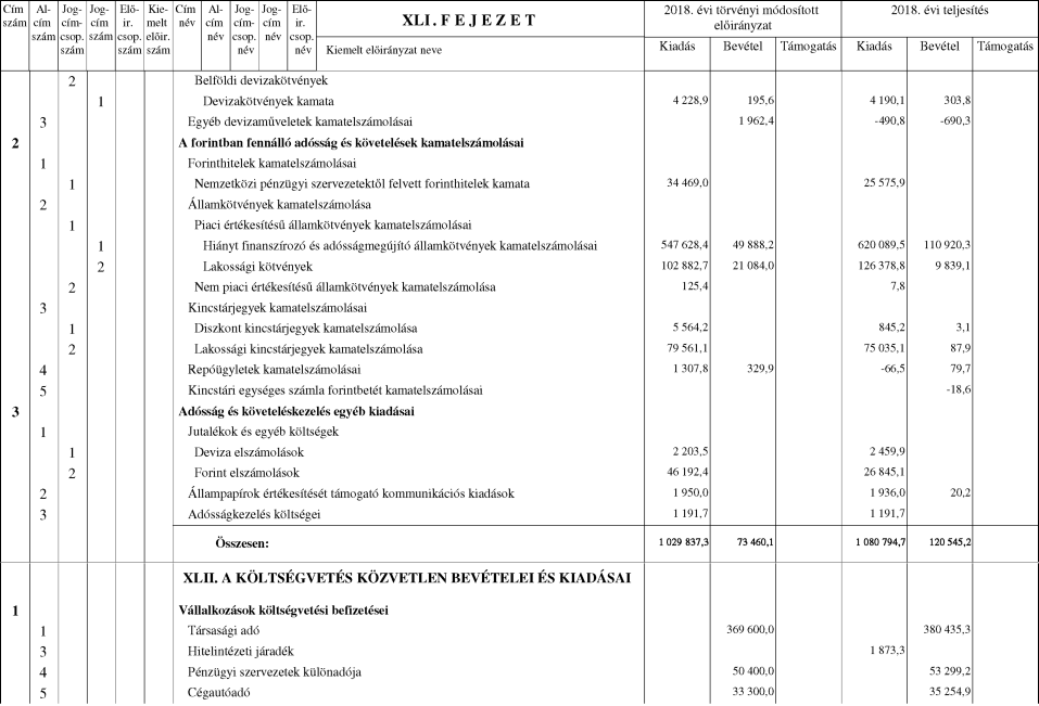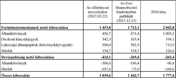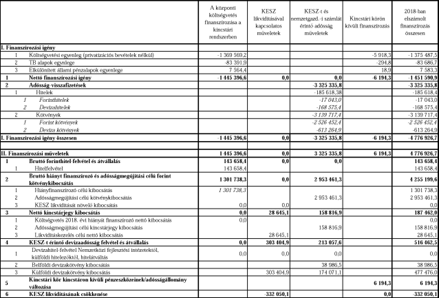 A központi költségvetés finanszírozási és adósságműveletei 2018-ban, előzetes adatok alapján