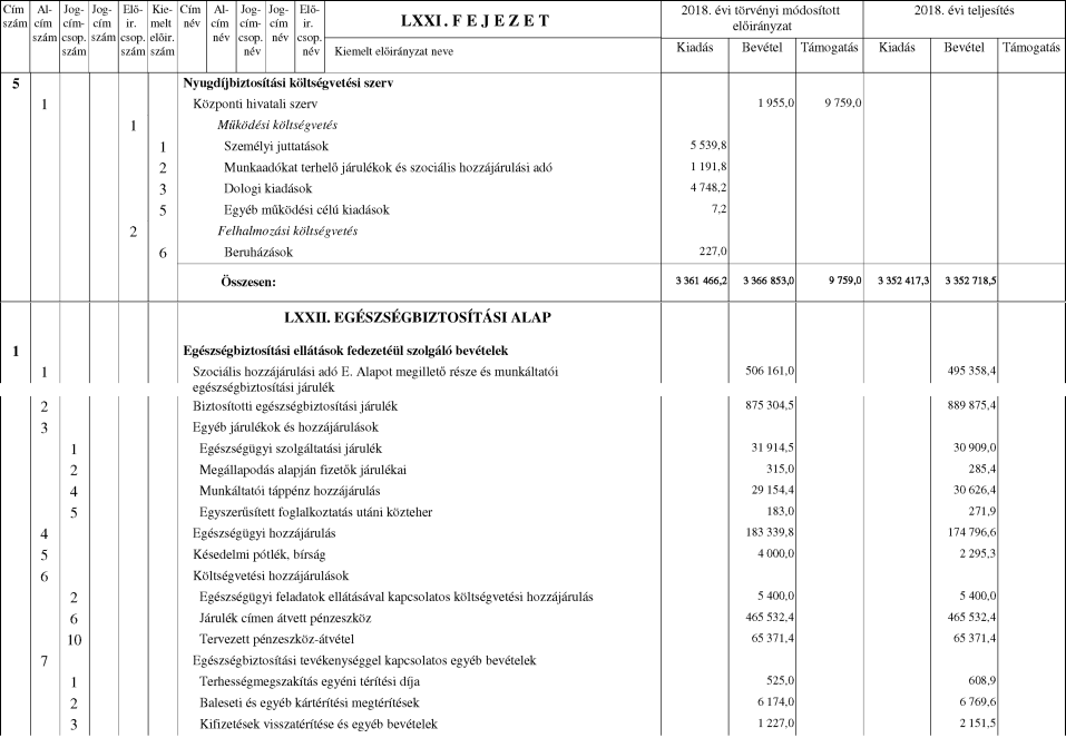 A TÁRSADALOMBIZTOSÍTÁS PÉNZÜGYI ALAPJAI 2018. ÉVI KÖLTSÉGVETÉSÉNEK VÉGREHAJTÁSA