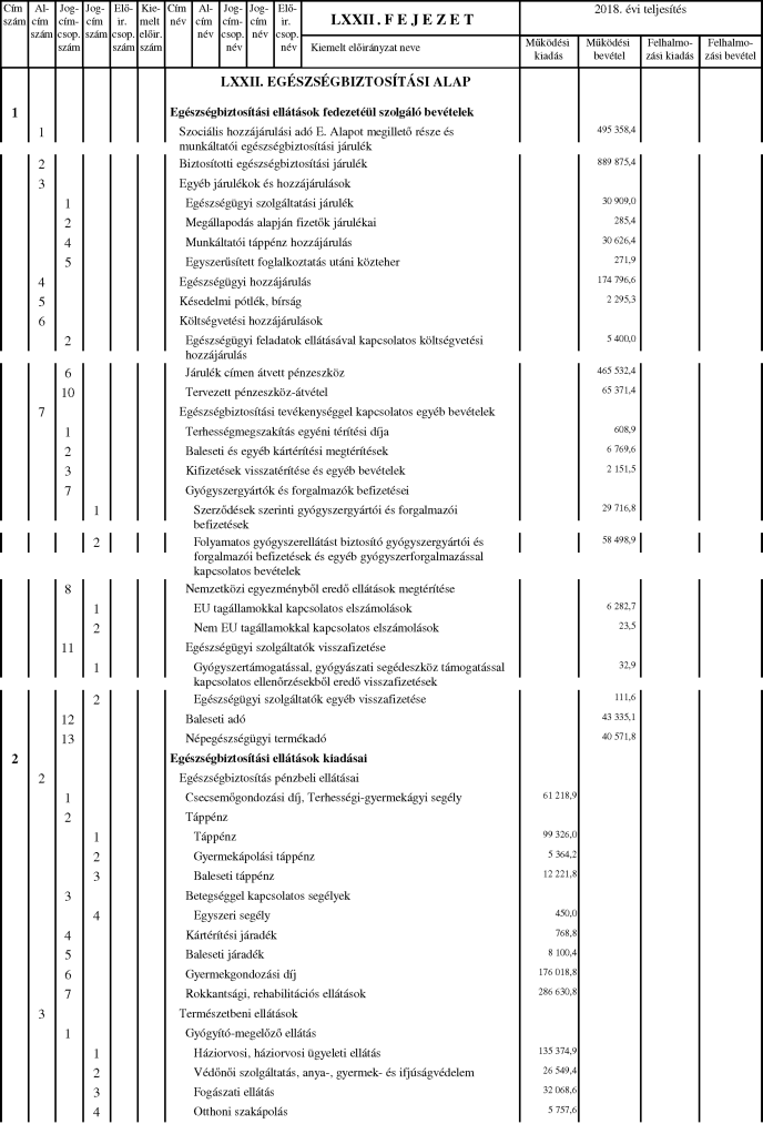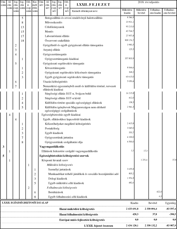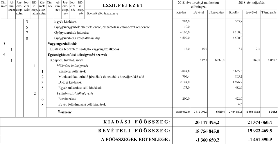 Az Országgyűlés a LXXII. Egészségbiztosítási Alap fejezet (a továbbiakban: E. Alap) 83 987,9 millió forint összegű hiányát a KESZ hitelállományából 2019. december 20-ai hatállyal elengedi.