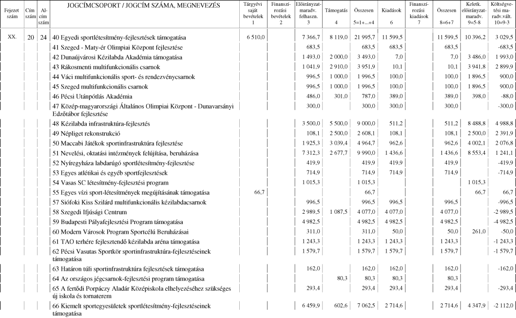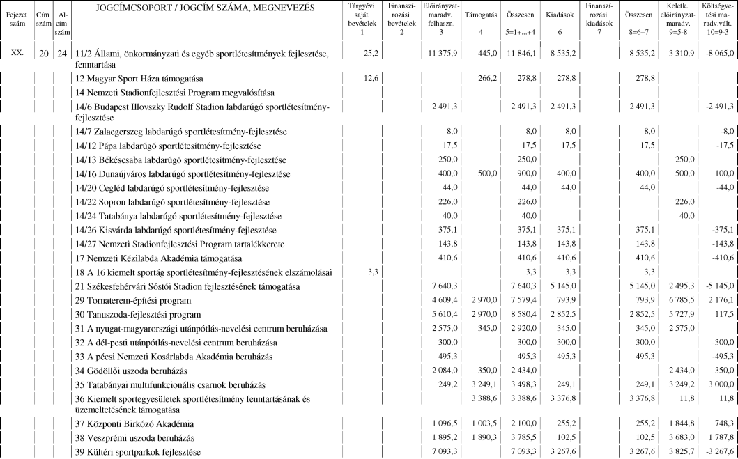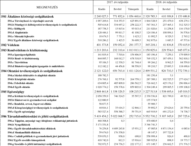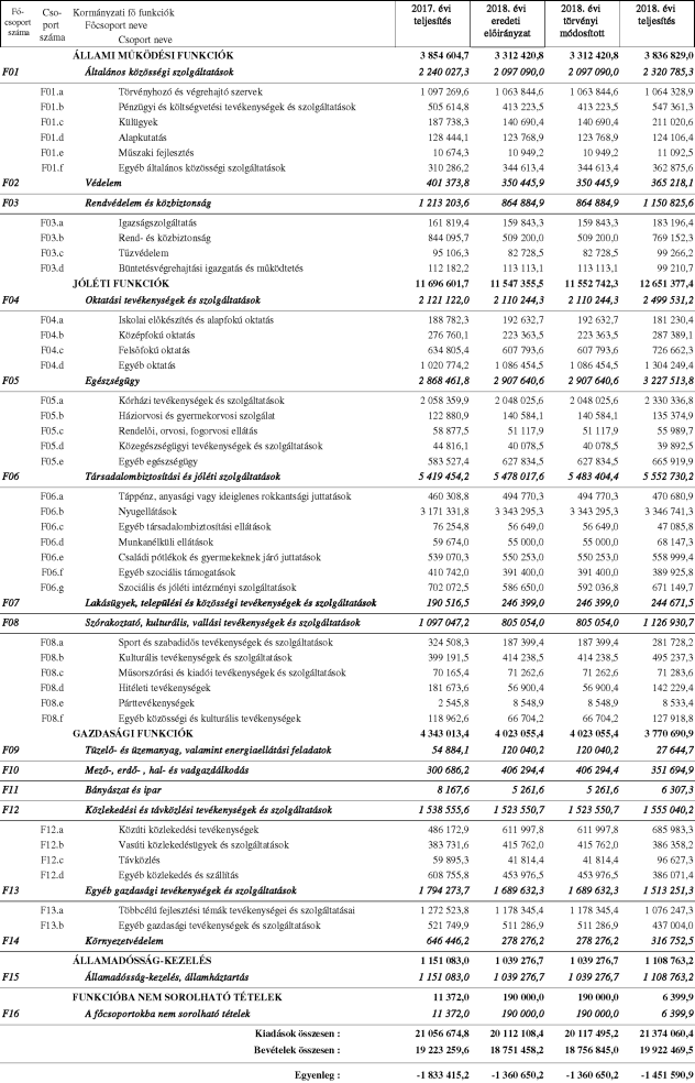 Az államháztartás funkcionális mérlege (pénzforgalmi szemléletben)