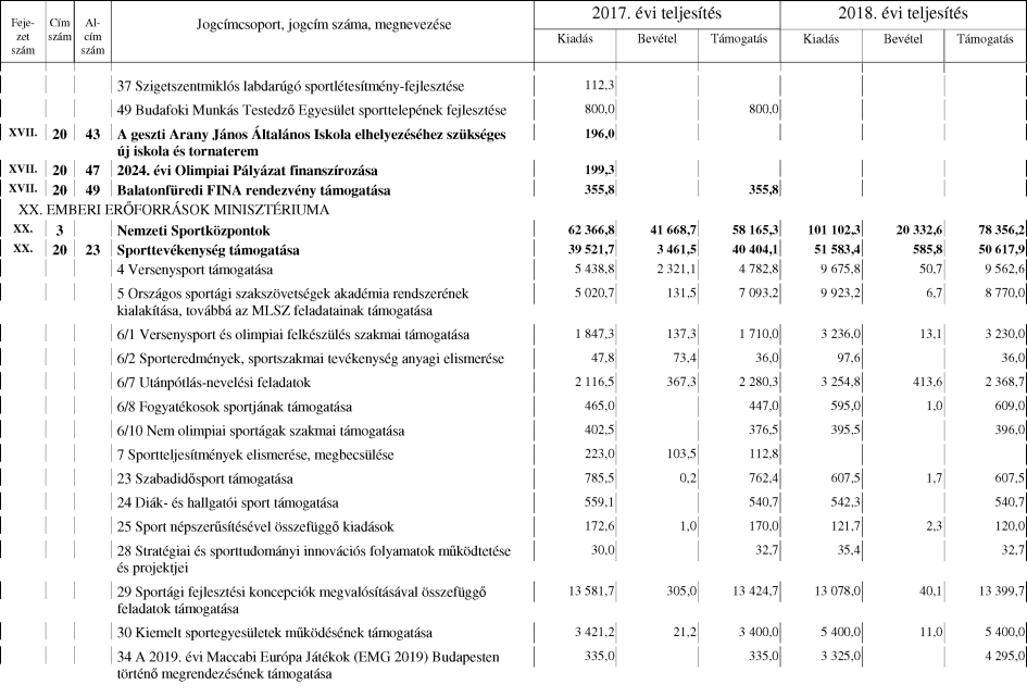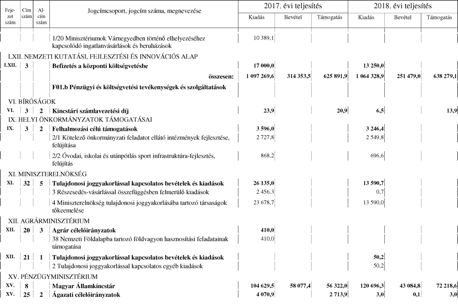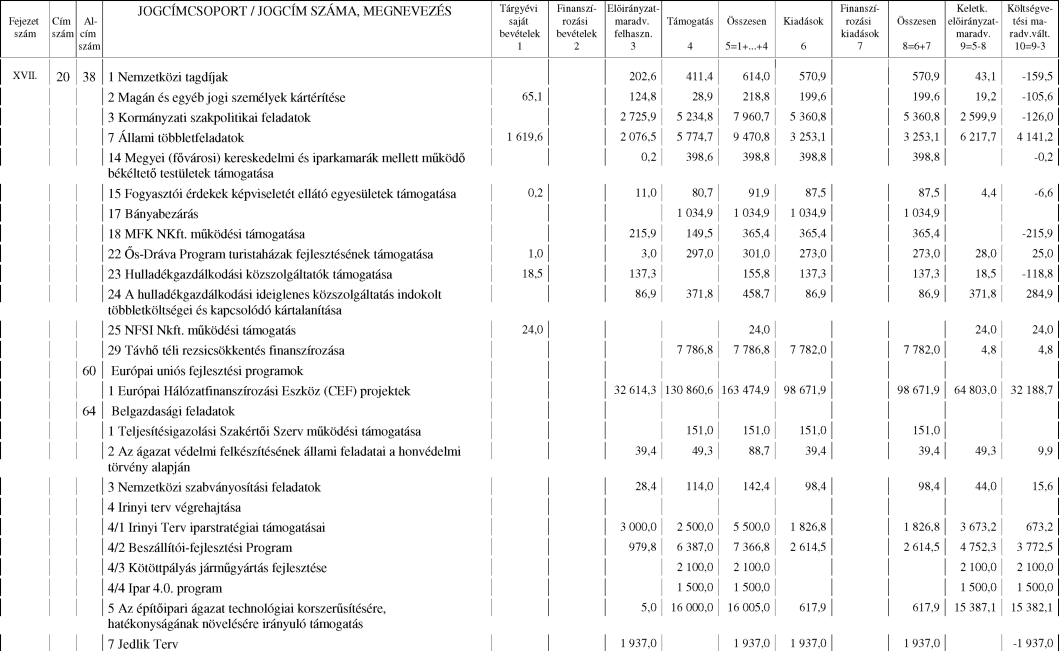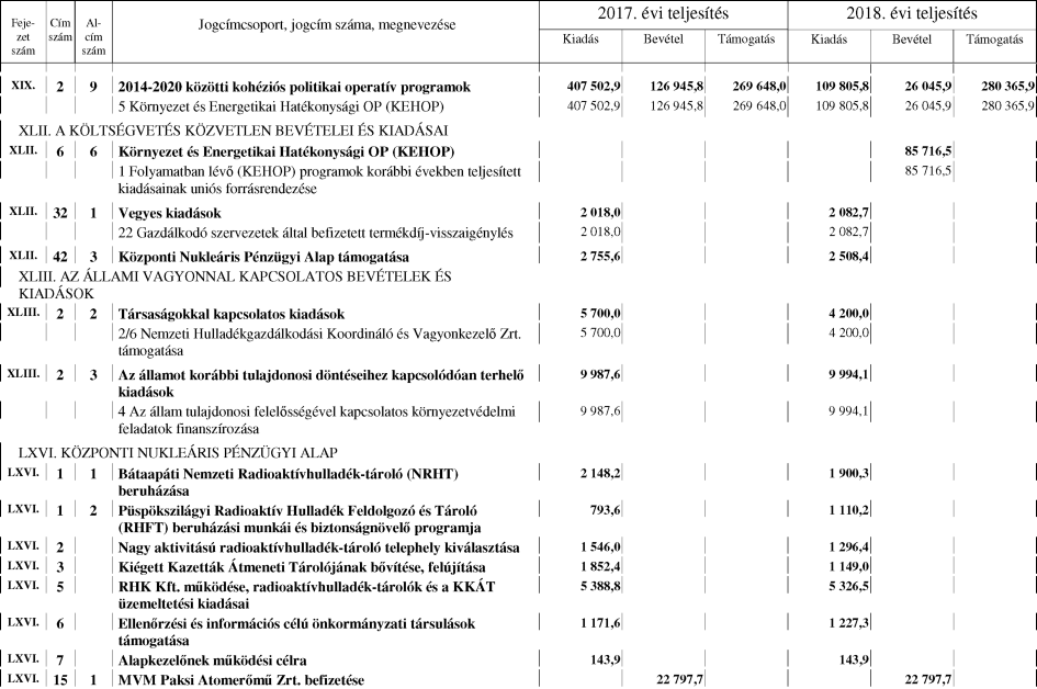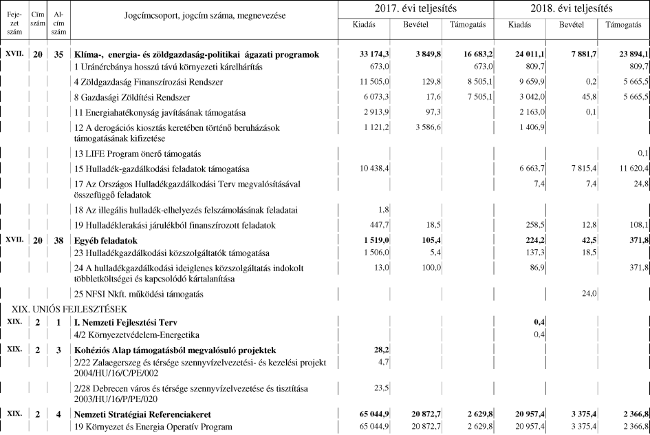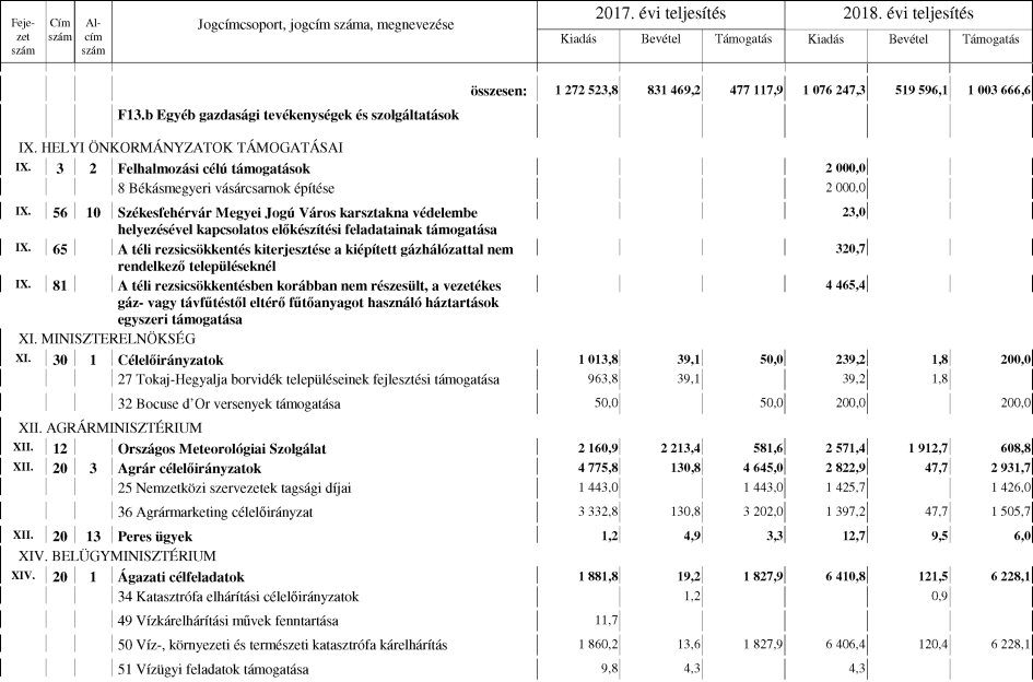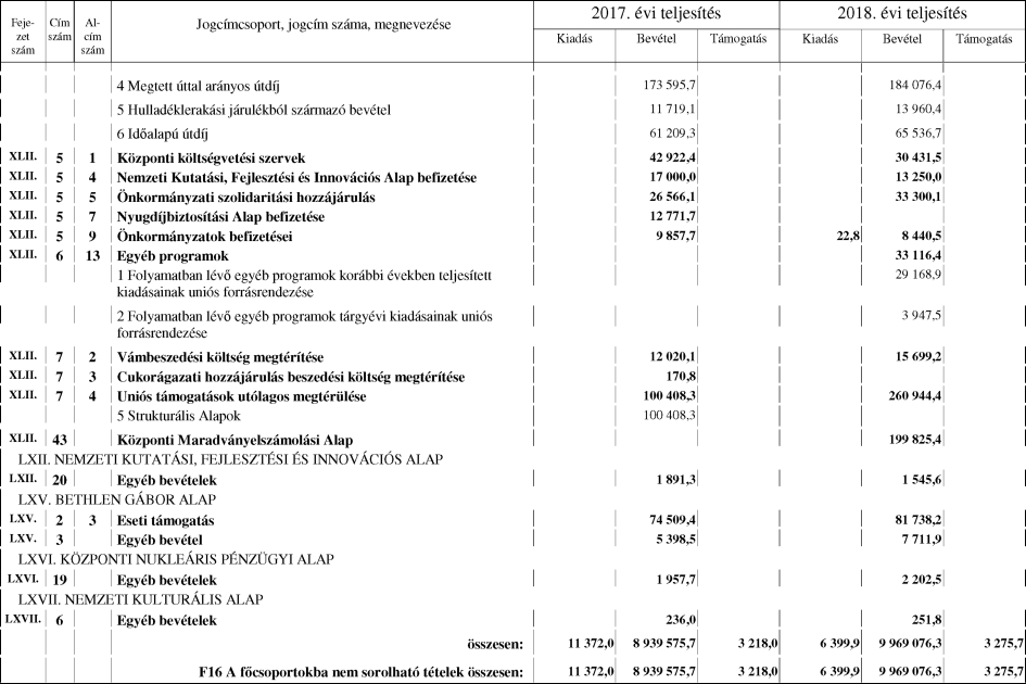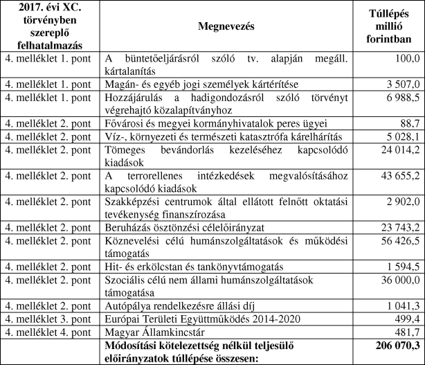 Az Országgyűlés megállapítja, hogy a Magyarország 2017. évi központi költségvetéséről szóló 2016. évi XC. törvény végrehajtásáról szóló 2018. évi LXXXIV. törvény 13-15. §-ában előírt megtérítési, visszautalási és elszámolási kötelezettségek teljesítése megtörtént.