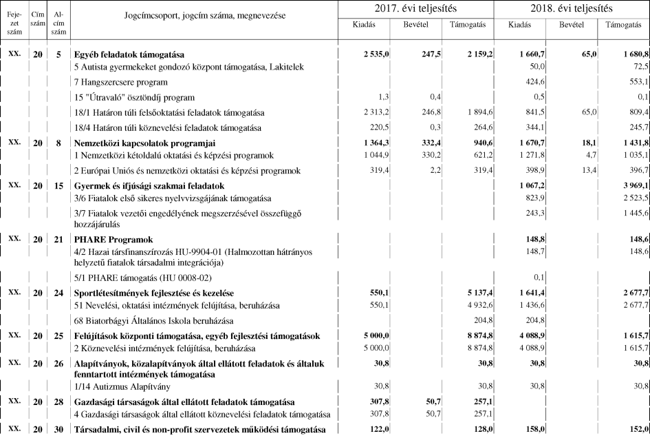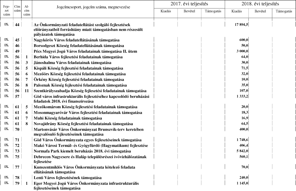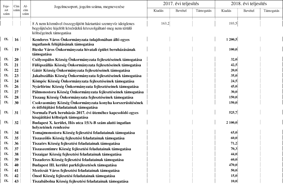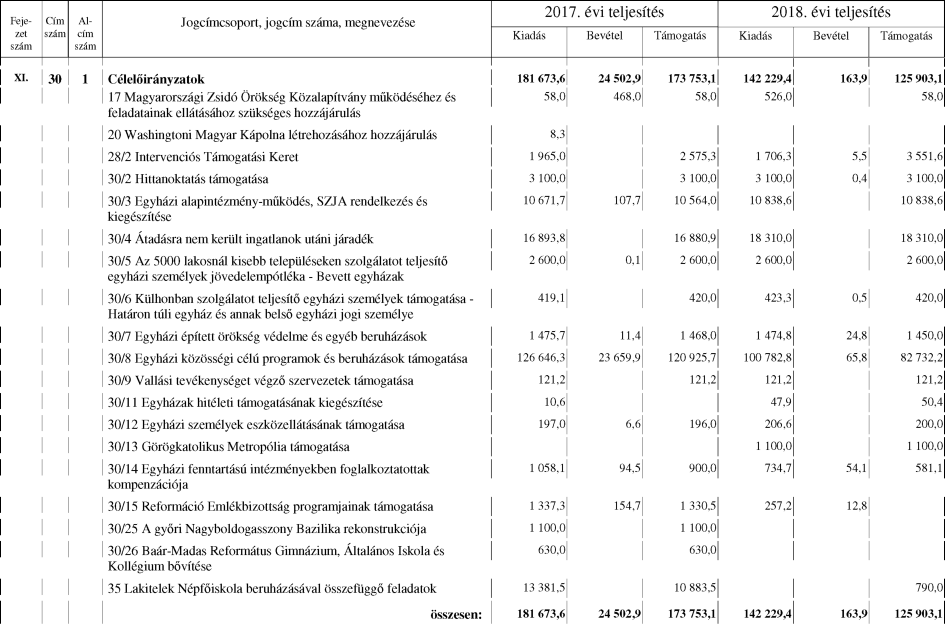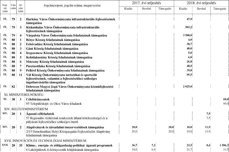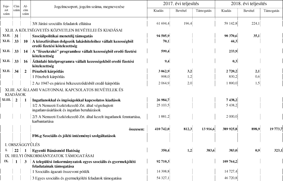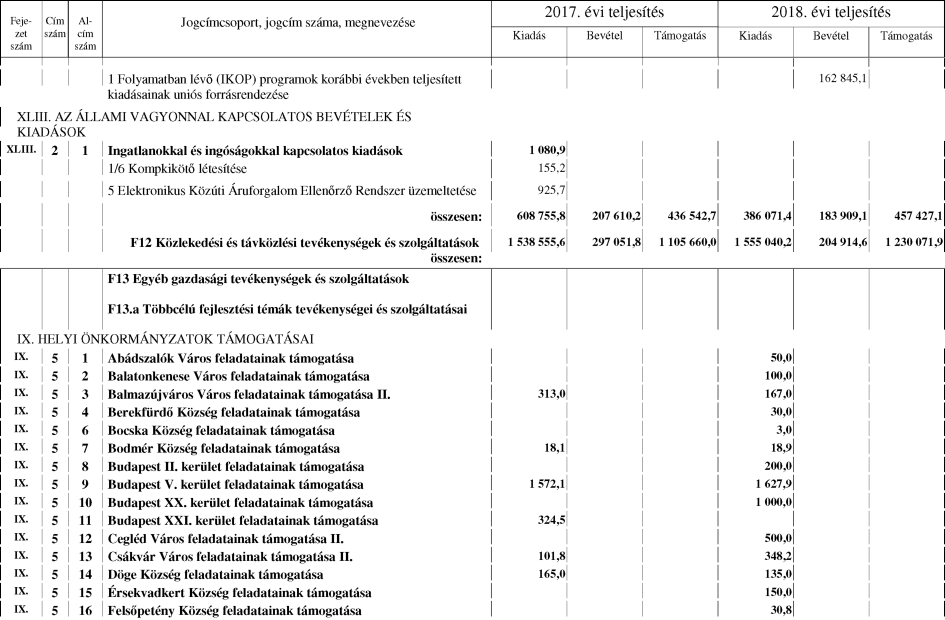 Az Országgyűlés megállapítja, hogy a Magyarország 2017. évi központi költségvetéséről szóló 2016. évi XC. törvény végrehajtásáról szóló 2018. évi LXXXIV. törvény 13-15. §-ában előírt megtérítési, visszautalási és elszámolási kötelezettségek teljesítése megtörtént.