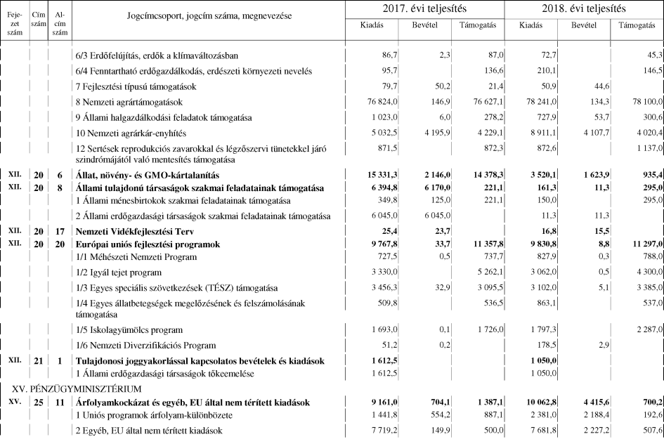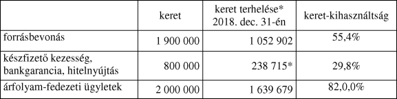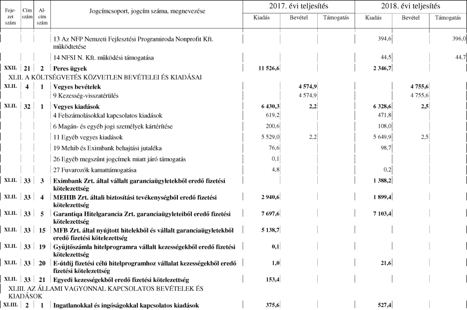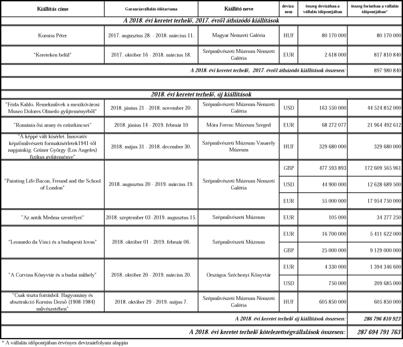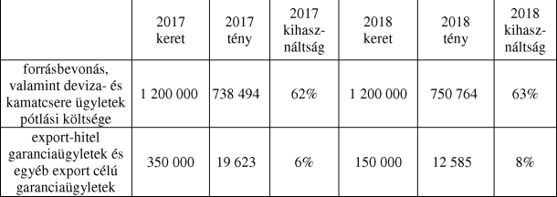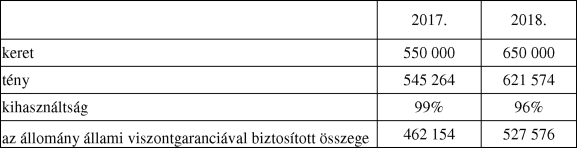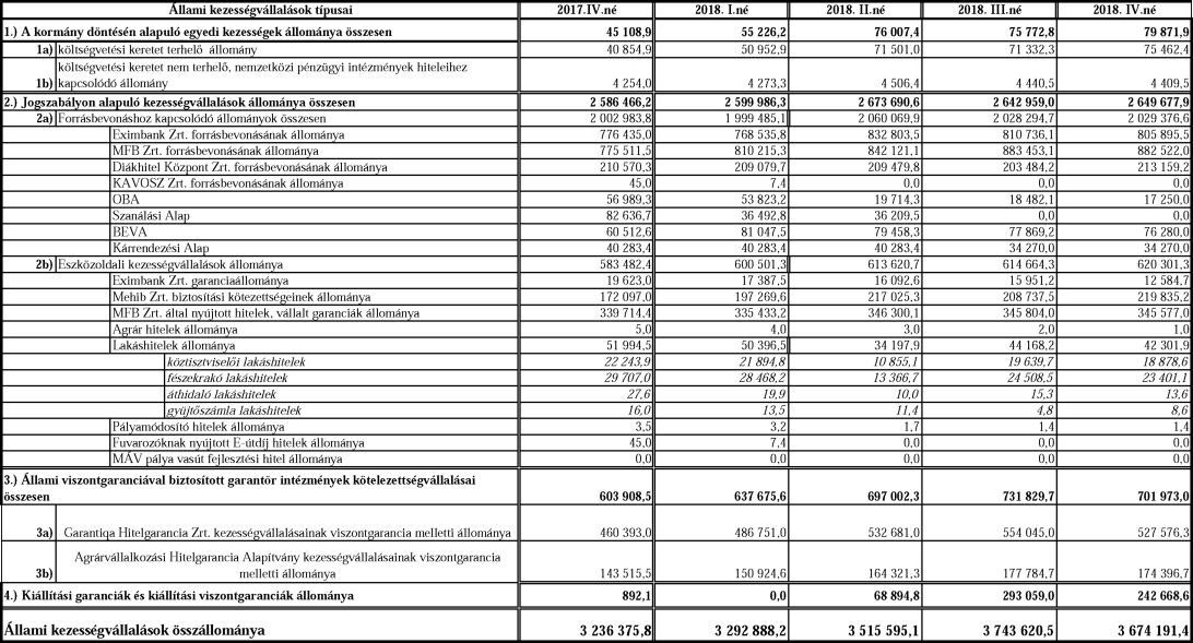 Az állam által vállalt kezességek/garanciák/viszontgaranciák 2017. évi záró és 2018. évi állományi adatai
