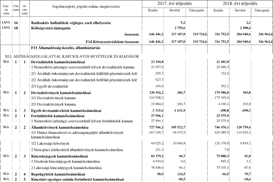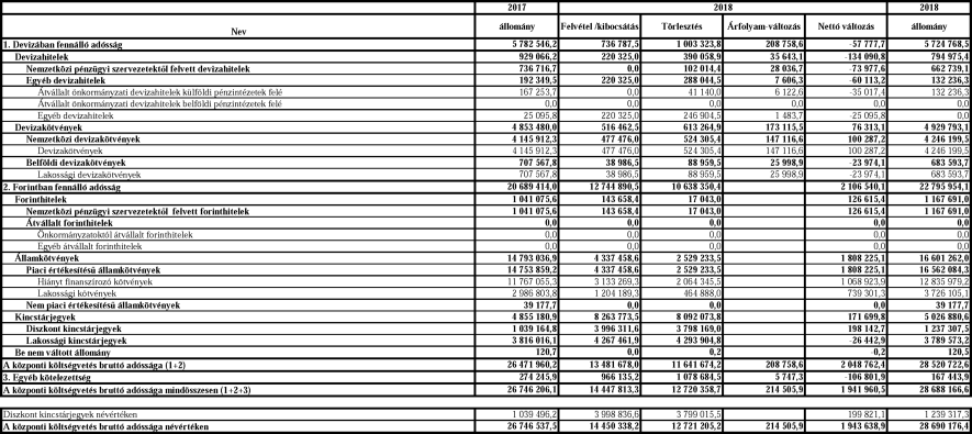 Az Országgyűlés jóváhagyja, hogy a Gst. 11. § (1) bekezdésének megfelelően a központi költségvetés deviza- és forintadósság-állományából 2018-ban az államháztartásért felelős miniszter az adósságtörlesztési számla terhére