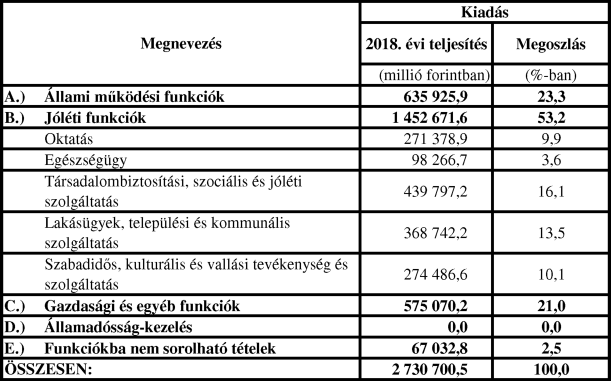 Az önkormányzatok kiadásainak funkcionális alakulása