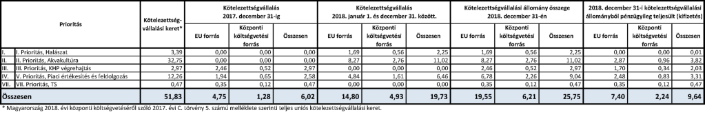 A Magyar Halgazdálkodási Operatív Program kötelezettségvállalási keretelőirányzatának és pénzügyi teljesülésének alakulása prioritás szerinti bontásban