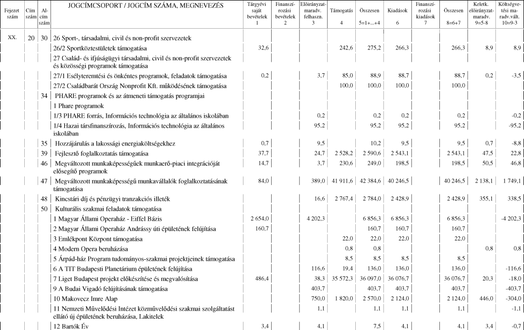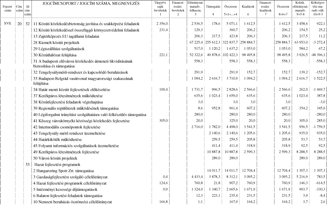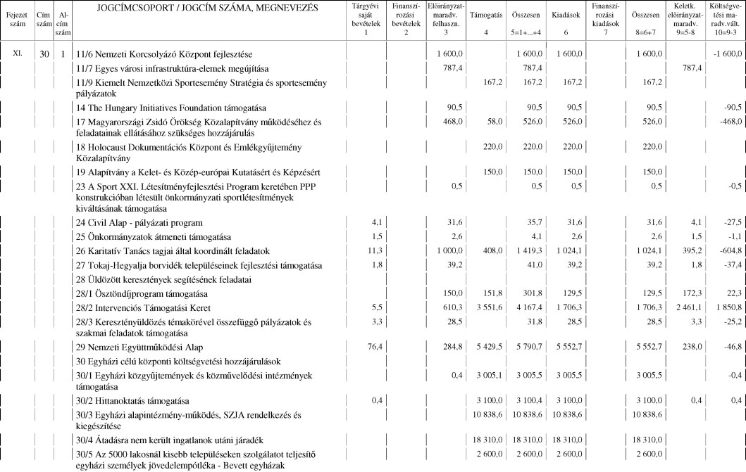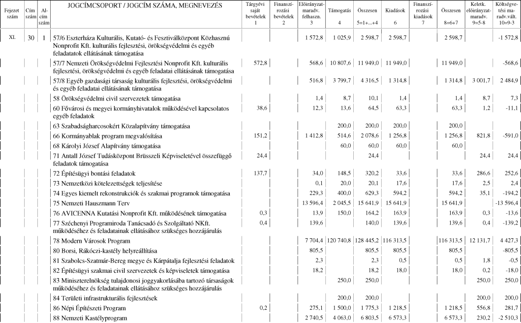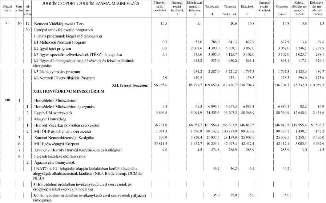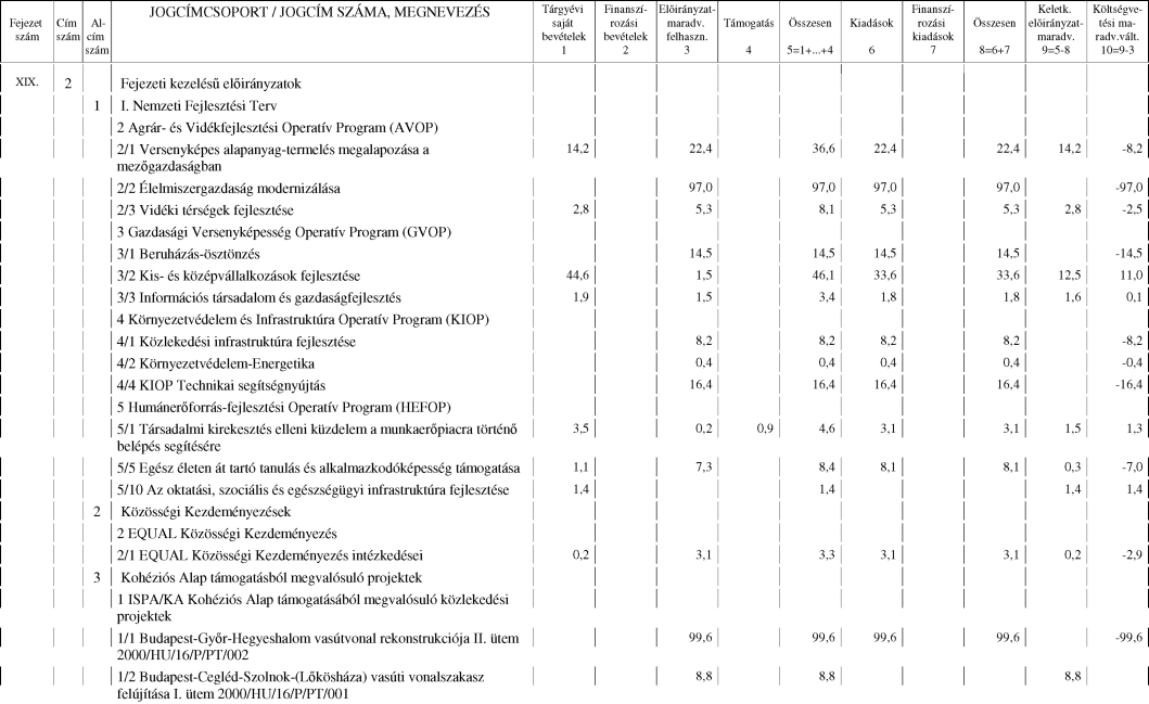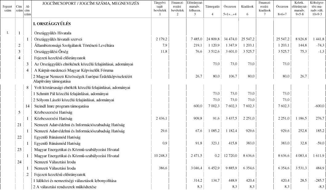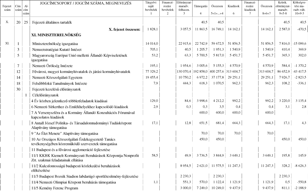 A KÖZPONTI ALRENDSZER ELŐIRÁNYZATAI