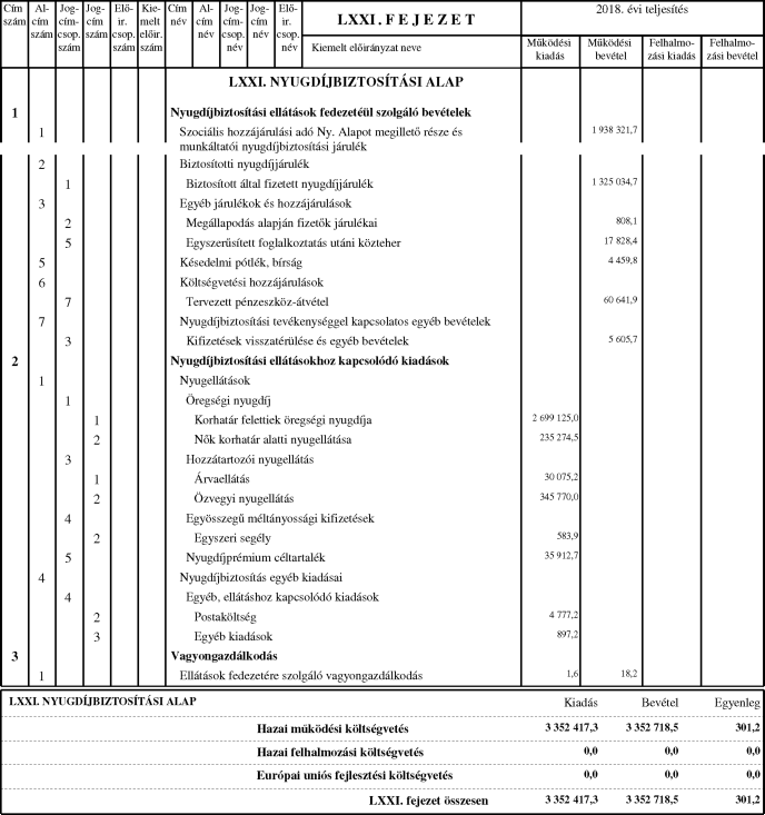 Az Országgyűlés elrendeli, hogy az Ny. Alap a 301,2 millió forint többletét a LXXI. fejezet 4. cím 1. Költségvetési befizetések alcím terhére 2019. december 31-éig fizesse be a XLII. A költségvetés közvetlen bevételei és kiadásai fejezet 5. cím, 7. Nyugdíjbiztosítási Alap befizetése alcím javára.