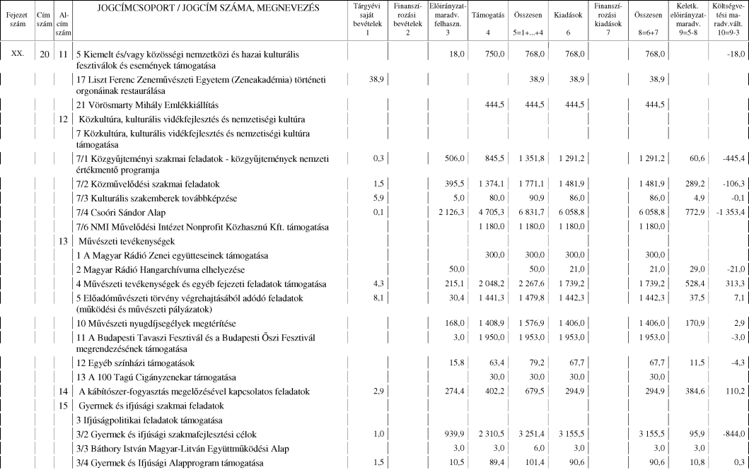 b) az Ny. Alap A költségvetés közvetlen bevételei és kiadásai fejezet részére a pénzbeli kárpótlás elszámolásához kapcsolódóan, az előző évek jogalap nélküli követeléseire megtérült 0,7 millió forintot utalja át a 10032000-01457247 "Rendkívüli kiadások" számla javára;