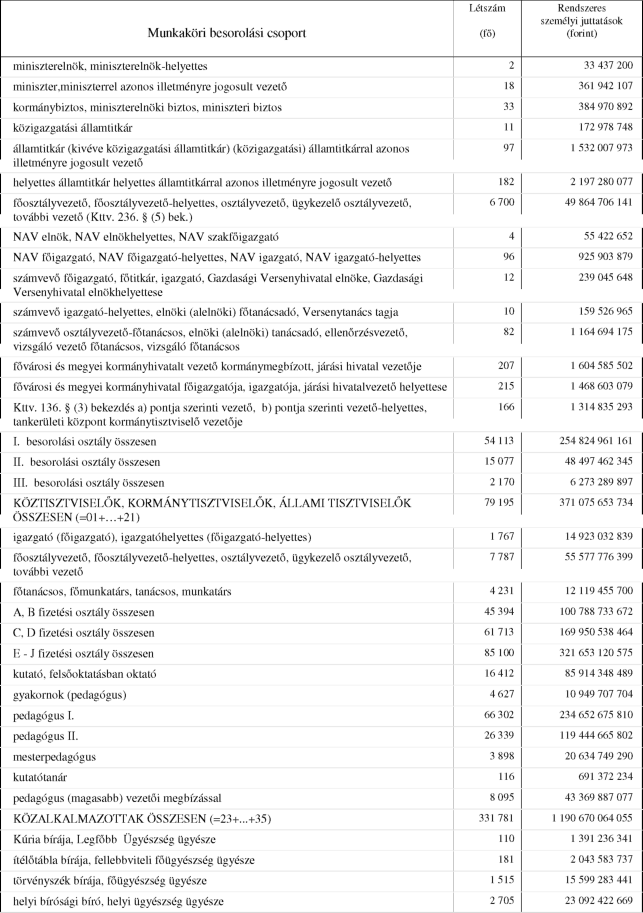 Költségvetési szerveknél foglalkoztatottak létszáma és rendszeres személyi juttatása 2018. évben