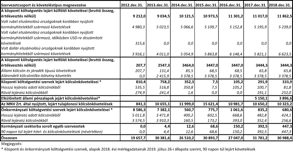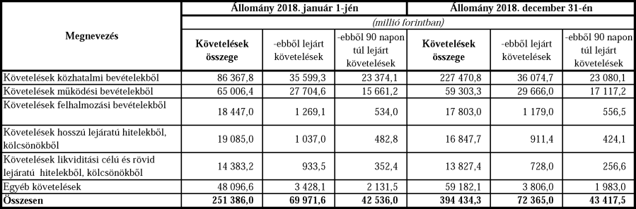 Az önkormányzati alrendszerből nyújtott, nem teljesülő hitel- és egyéb követelések állománya 2018-ban