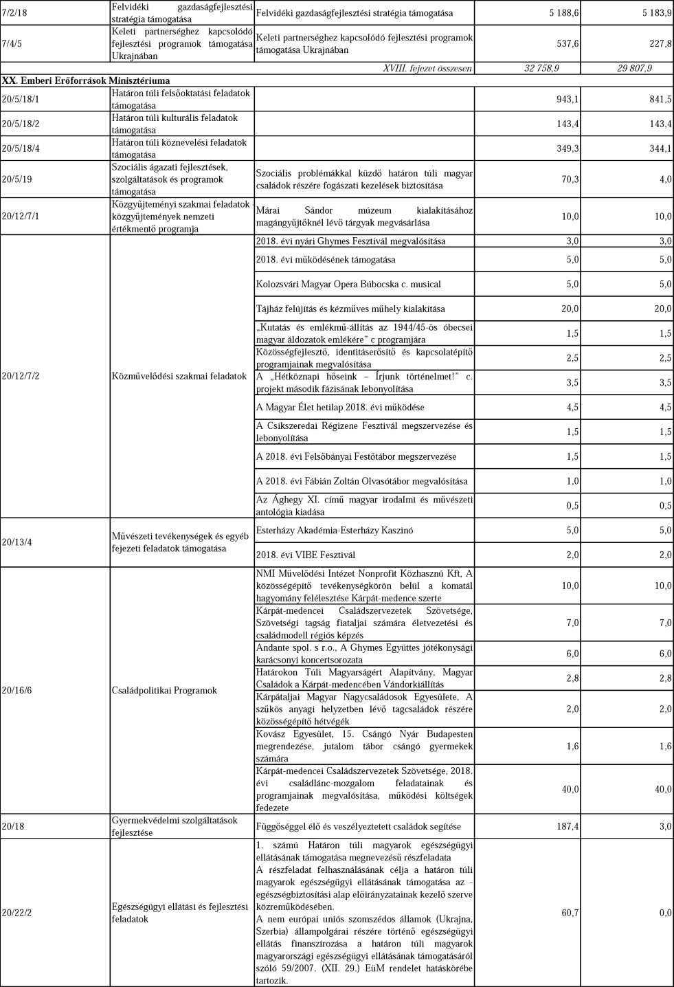 A szakpolitikai célú nemzetpolitikai/határon túli feladatokra fordított források a 2018. évi költségvetésben