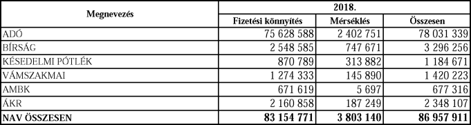 a 2018. évben engedélyezett fizetési kedvezményi ügyekről