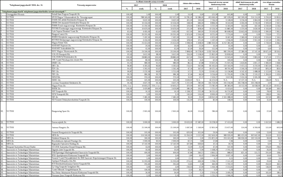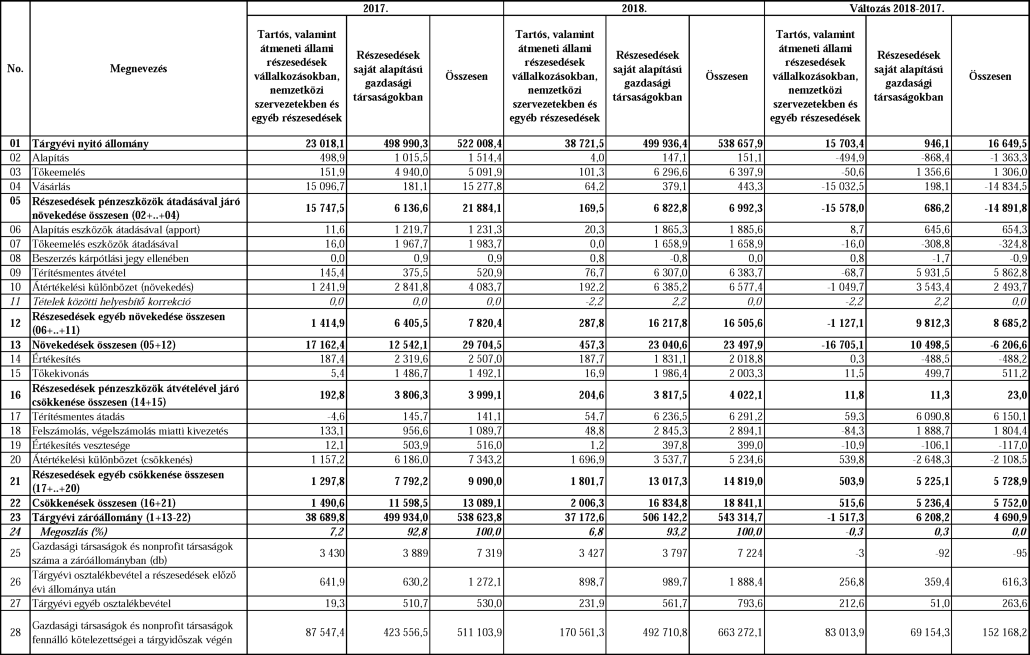 Az állam tulajdonában álló gazdasági társaságok állami részesedései, eredményeik és kötelezettség-állományuk alakulása 2017-2018. években