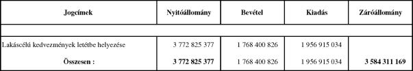 A Kincstár kezeli a 2008. évben megnyitott lakáscélú kedvezmények letéti számlát. Amennyiben olyan lakást értékesítettek, amelyre szociálpolitikai támogatást nyújtott az állam, az újonnan épített, illetve vásárolt új ingatlan megvételéig ezen a számlán kell letétbe helyezni a támogatás összegét. A letétbe helyezett összeg visszafizetéséről vagy végleges költségvetési bevételként való elszámolásáról 2015. április 1-jétől a megyei kormányhivatalok rendelkeznek. A számla nyitóegyenlege 3.772.825.377 ezer forint volt. Az év folyamán 1.768.400.826 ezer forint folyt be és 1.956.915.034 ezer forint került visszafizetésre, így a számla 3.584.311.169 ezer forint egyenleggel zárt.