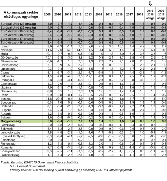 A kormányzati szektor elsődleges egyenlege az EU országaiban, Izlandon és Norvégiában