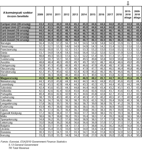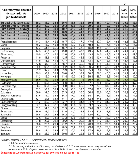 A kormányzati szektor adó- és járulékbevétele az EU országaiban, Izlandon és Norvégiában