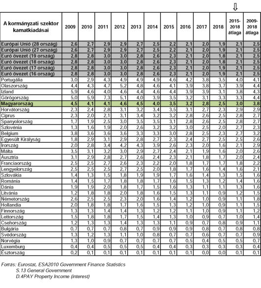 A kormányzati szektor kamatkiadásai az EU országaiban, Izlandon és Norvégiában