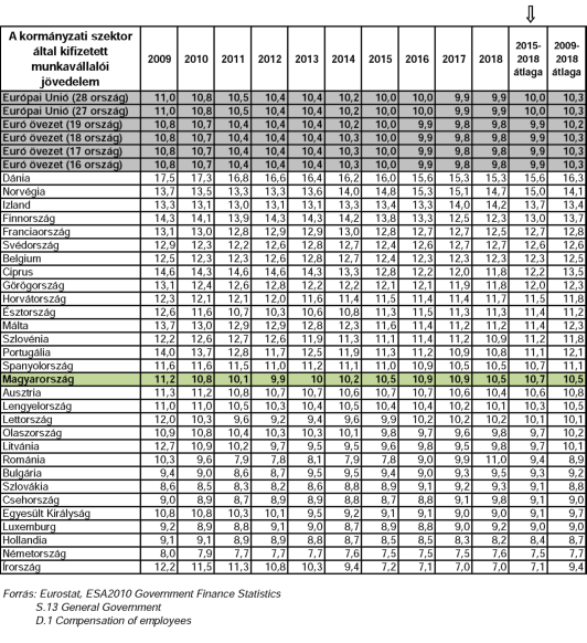 A kormányzati szektor által kifizetett munkavállalói jövedelem az EU országaiban, Izlandon és Norvégiában