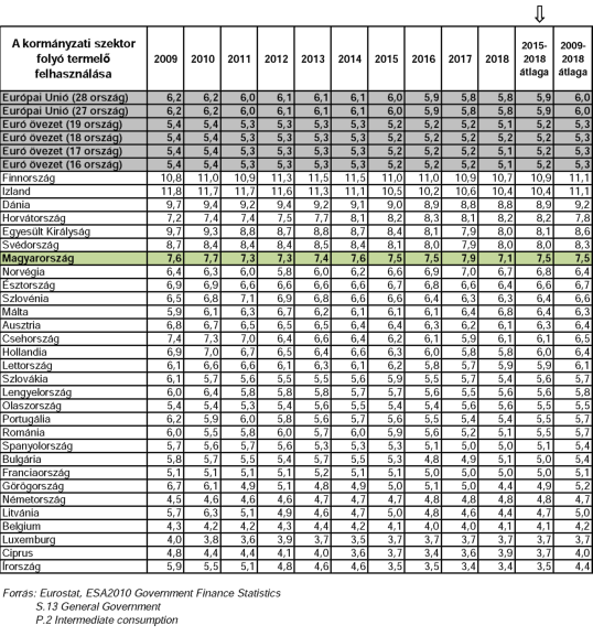 A kormányzati szektor folyó termelő felhasználása az EU országaiban, Izlandon és Norvégiában