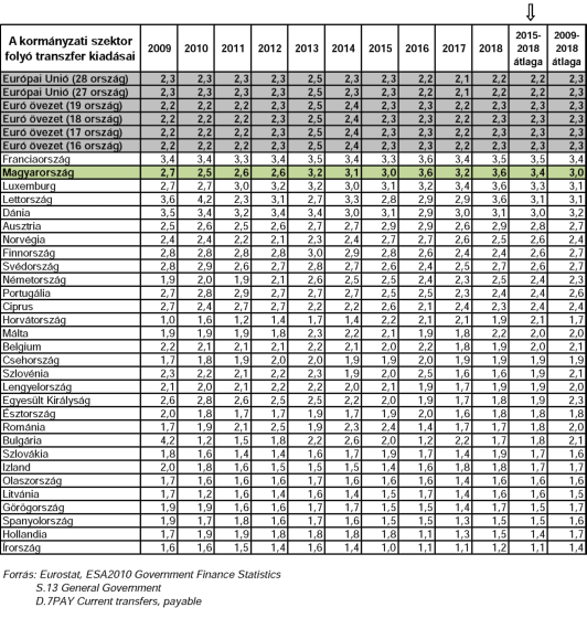 A kormányzati szektor folyó transzfer kiadásai az EU országaiban, Izlandon és Norvégiában