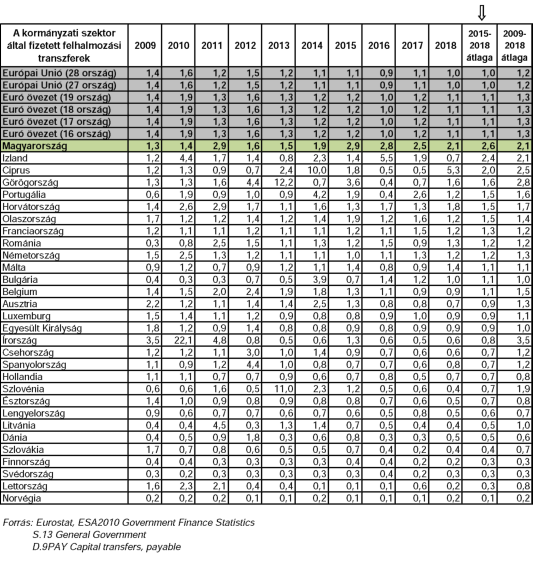 A kormányzati szektor által fizetett felhalmozási transzferek az EU országaiban, Izlandon és Norvégiában