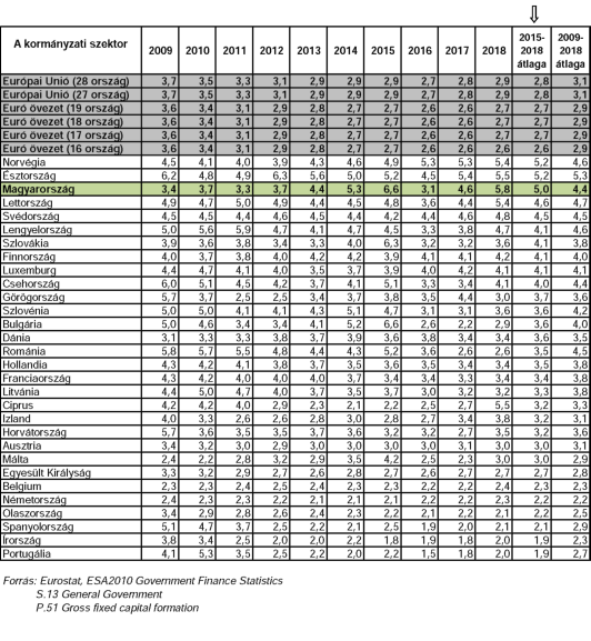 A kormányzati szektor bruttó állóeszköz-felhalmozása az EU országaiban, Izlandon és Norvégiában