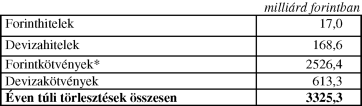 c) 213 057,6 millió forint összegben deviza kötvényeket értékesített belföldi és külföldi hitelezőknek.