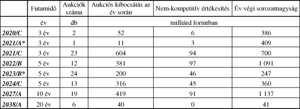 a) 2 953 461,3 millió forint összegben forint államkötvényeket értékesített belföldi és külföldi befektetőknek,