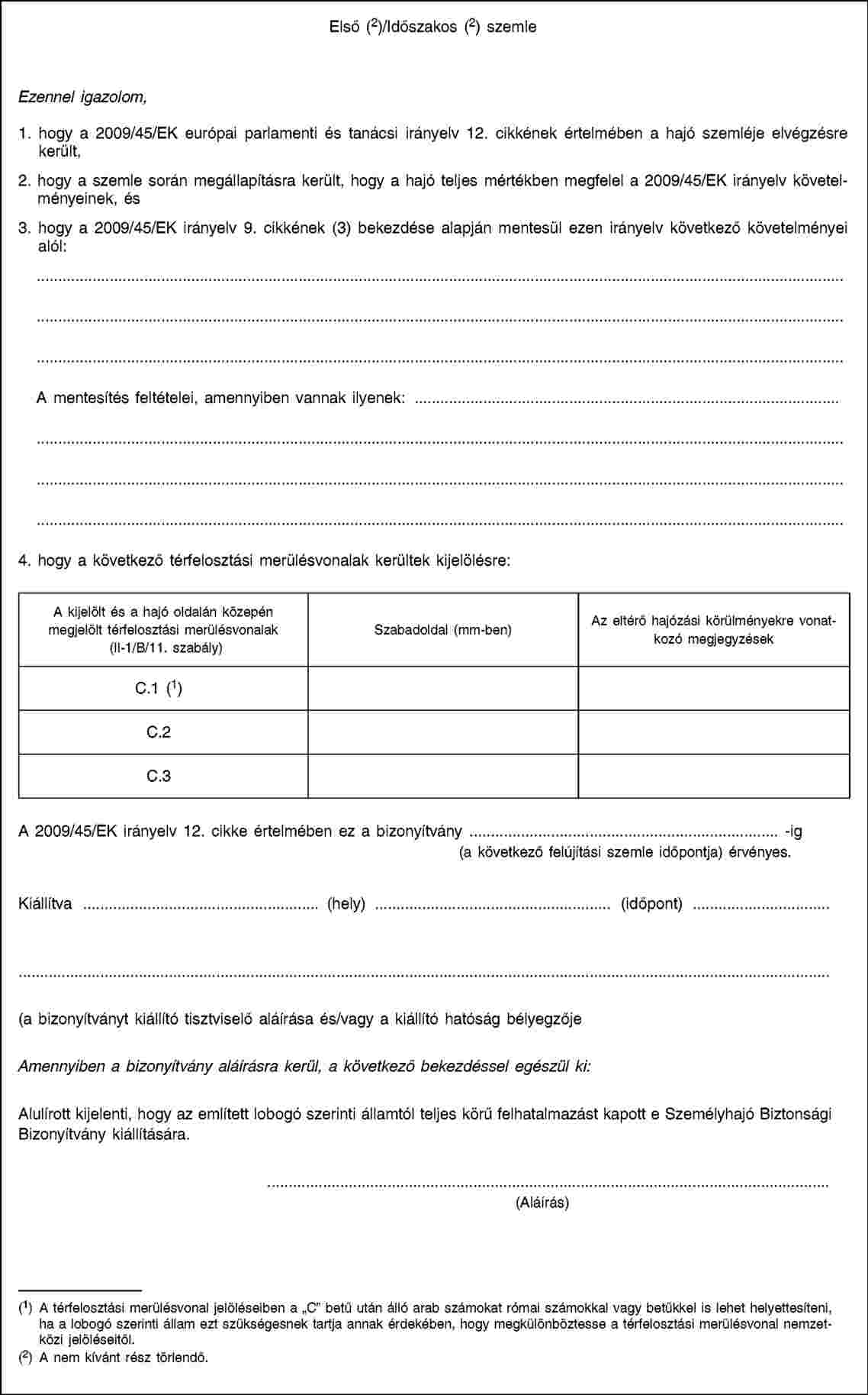 (2) A térfelosztási merülésvonal jelöléseiben a »C« betű után álló arab számokat római számokkal vagy betűkkel is lehet helyettesíteni, ha a lobogó szerinti állam ezt szükségesnek tartja annak érdekében, hogy megkülönböztesse a térfelosztási merülésvonal nemzetközi jelöléseitől.