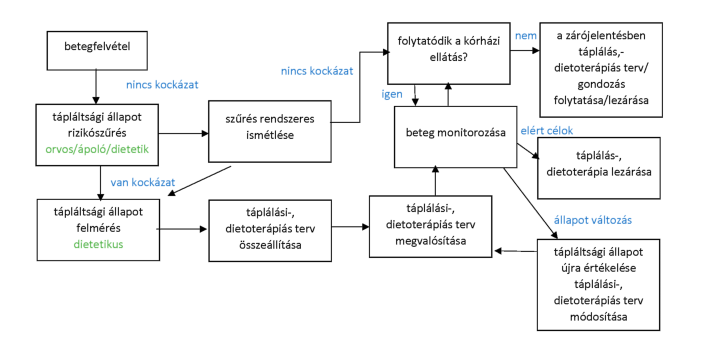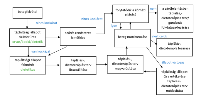 Ellátási folyamat szakasza(i): Tápláltsági állapot felmérése és táplálkozási anamnézis felvétele, dietetikai diagnózis felállítása, dietoterápia, a diétás szaktanácsadás módszertana, utánkövetés/gondozás.