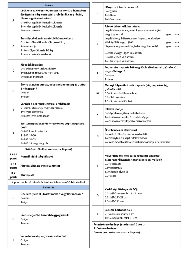 Malnutríció rizikószűrés: egy olyan gyors, validált szűrőmódszer, mellyel beazonosíthatók a táplálkozási kockázattal rendelkező egyének.