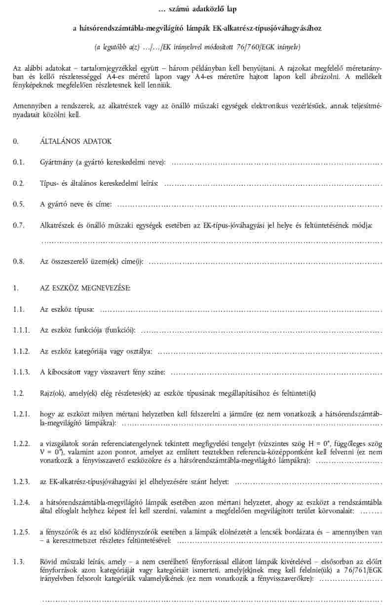 1.1. A 70/156/EGK irányelv 3. cikkének (4) bekezdése értelmében a hátsórendszámtábla-megvilágító lámpák valamely típusára vonatkozó EK-alkatrésztípus-jóváhagyás iránti kérelmet a gyártó nyújtja be.