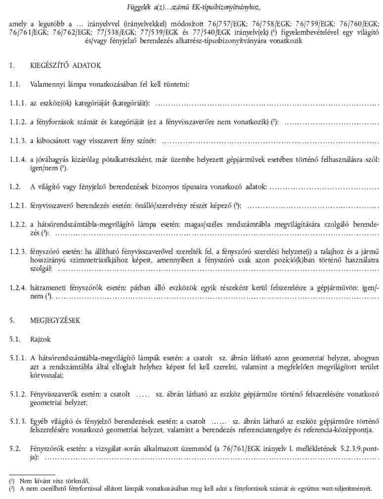 I. MELLÉKLET: | Igazgatási rendelkezések a típusjóváhagyásra vonatkozóan | |