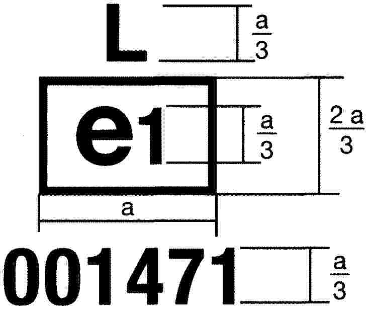 (A függőleges és vízszintes vonalak a fényjelző berendezés alakját sematikus formában jelenítik meg. Ezek a jóváhagyási jelnek nem részei).