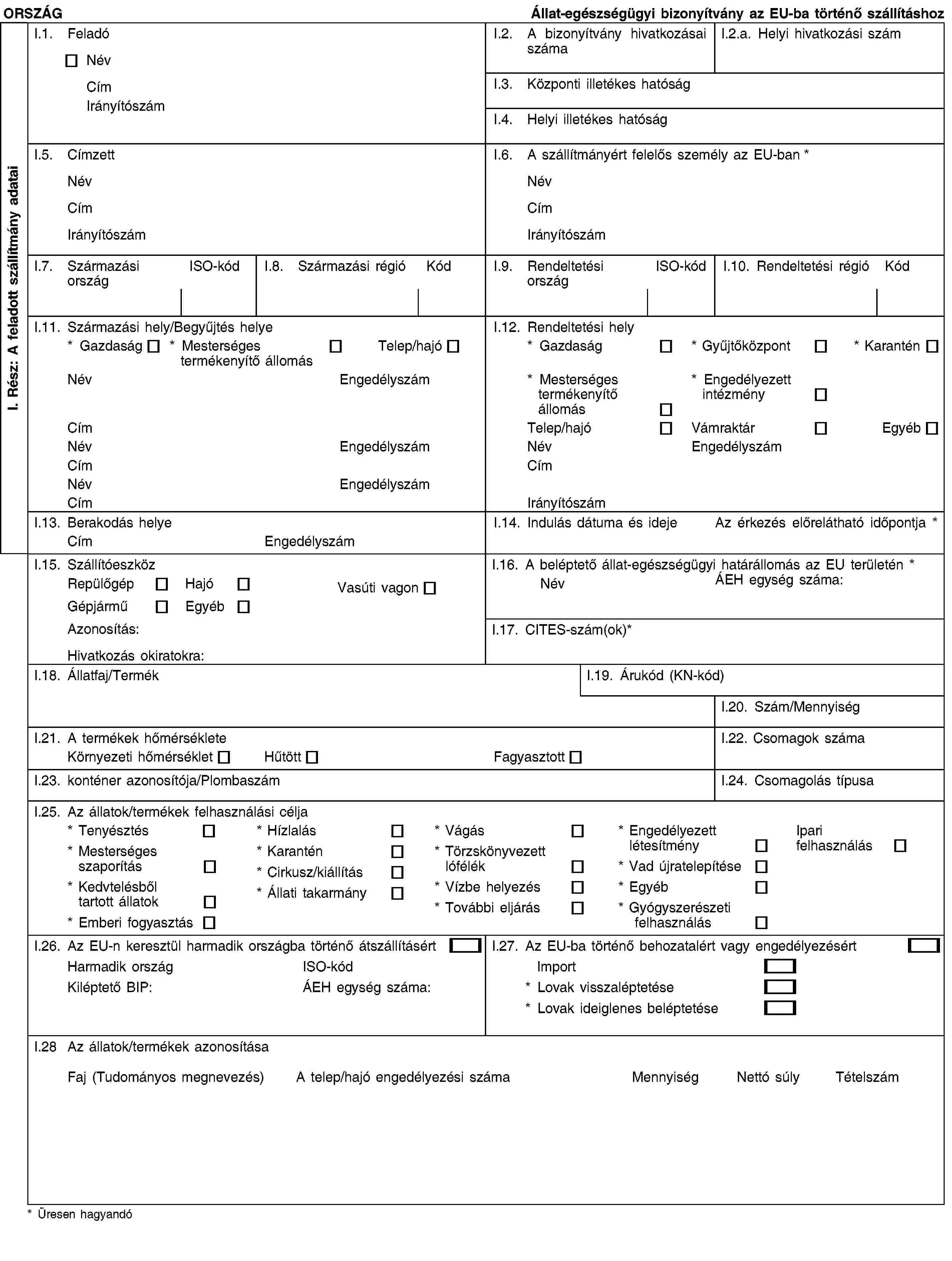 h) A bizonyítvány eredeti példányának az EU állat-egészségügyi határállomásáig kell kísérnie a szállítmányt.