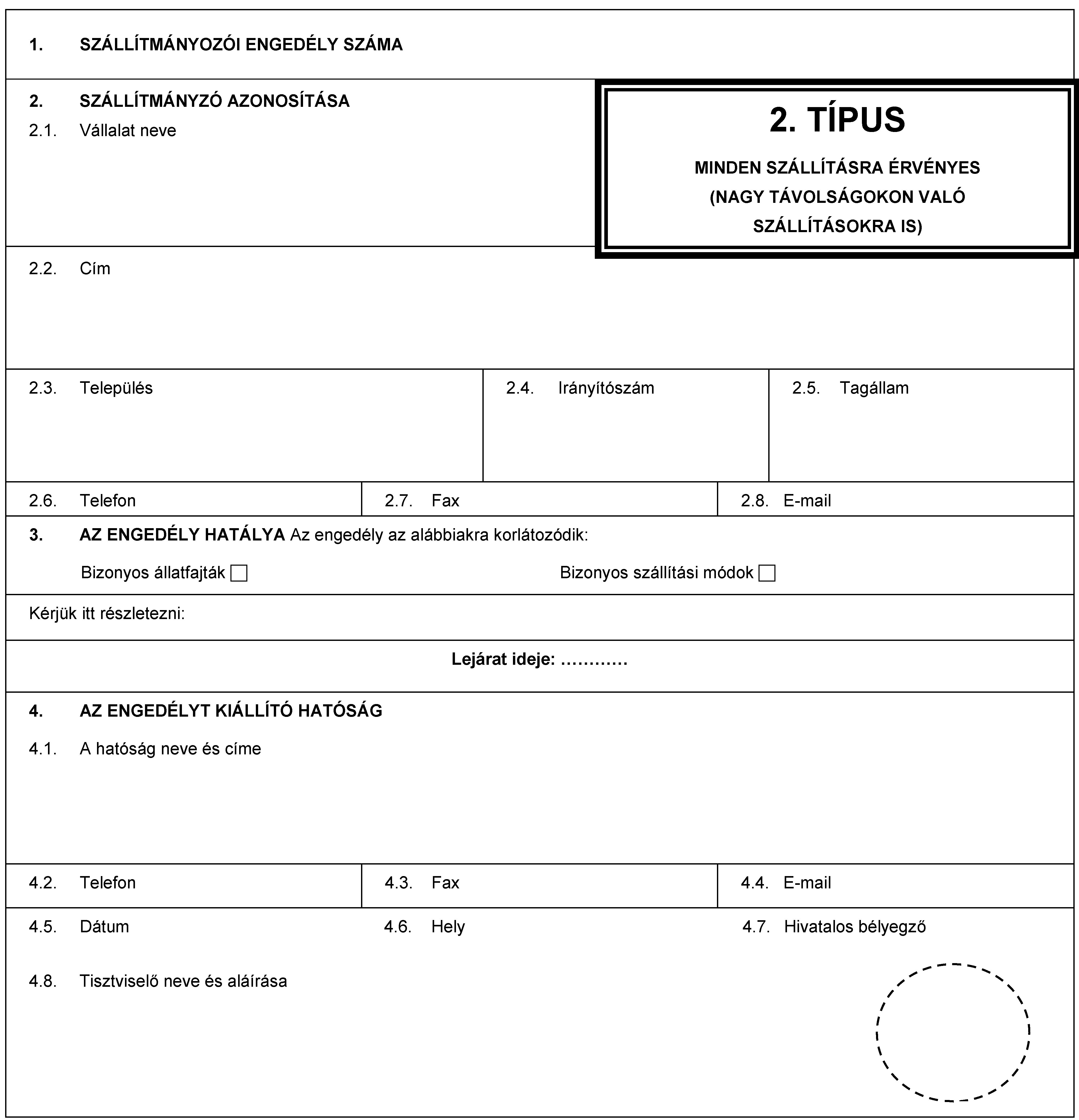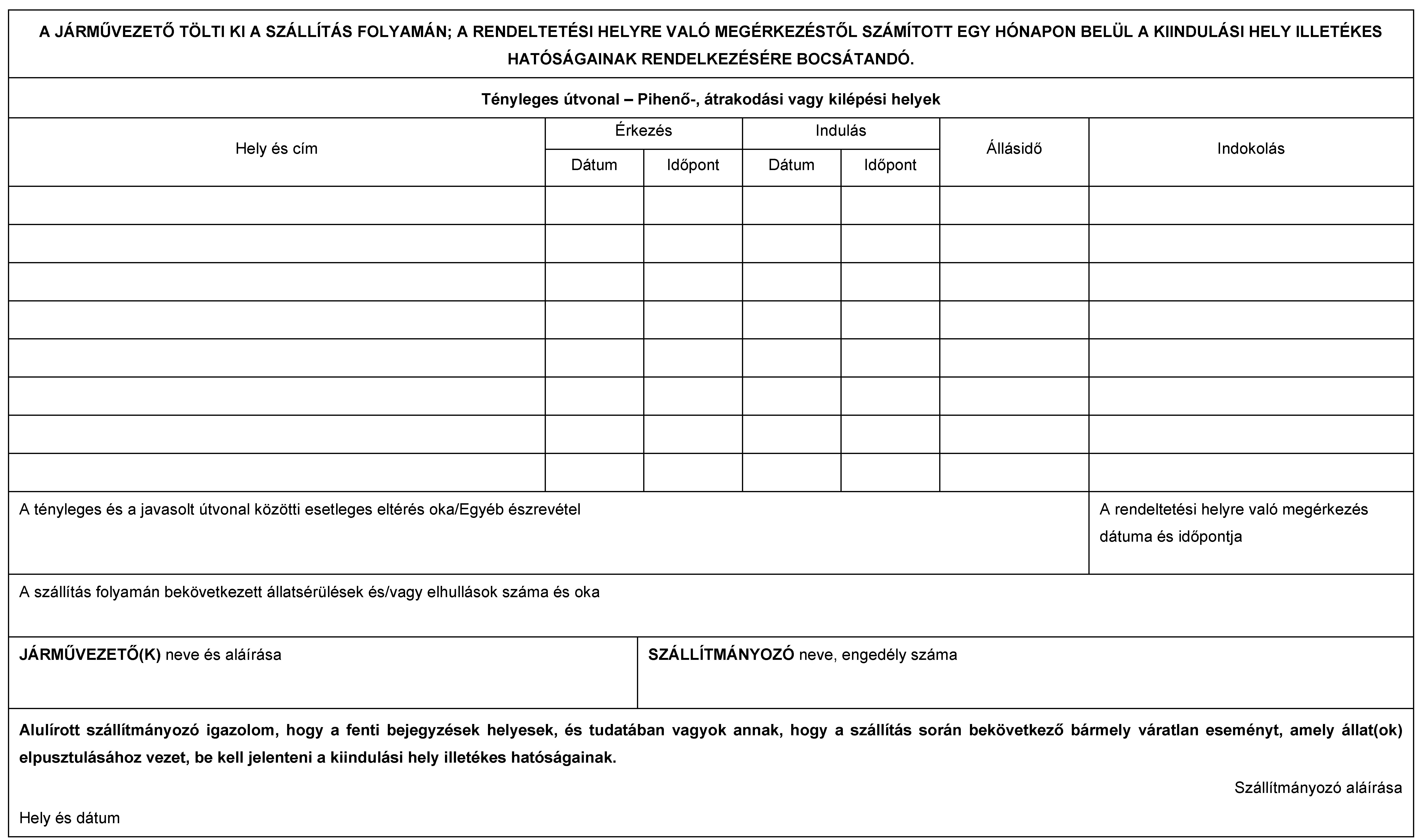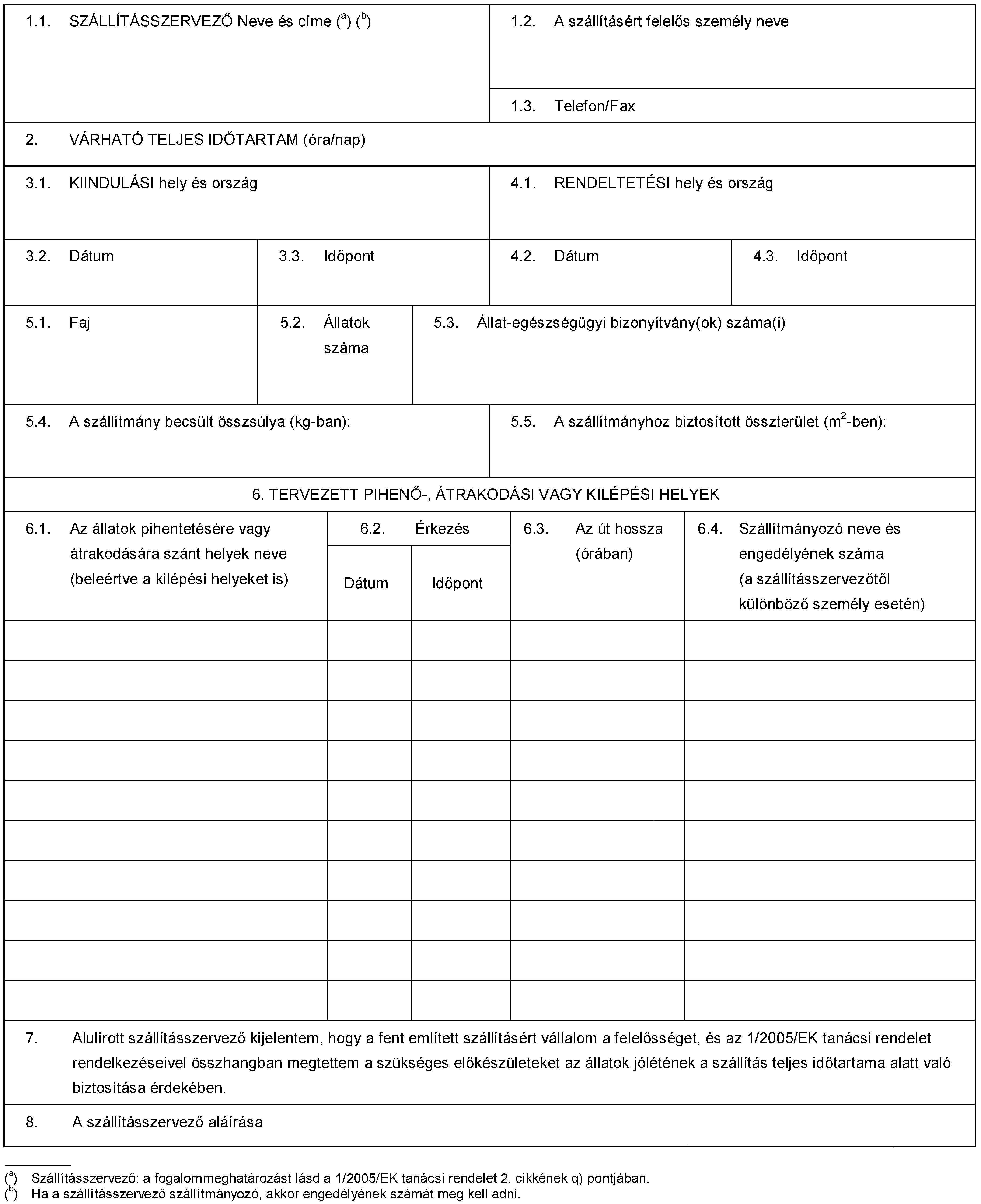 1. A hosszú távolságon való szállítást tervező személy a melléklet rendelkezéseinek megfelelően kitölti, lebélyegzi és aláírja a menetlevél valamennyi oldalát.
