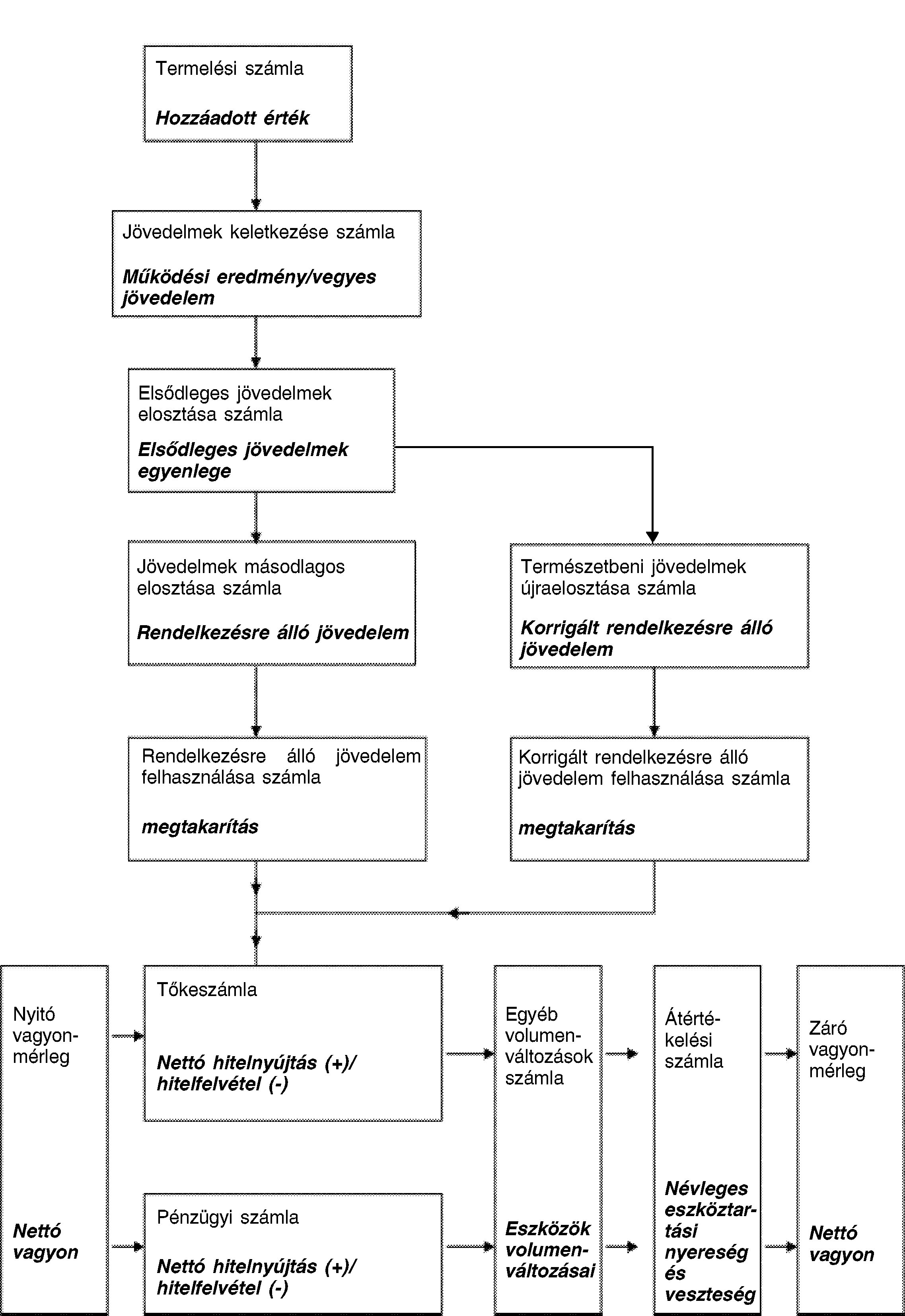 1. 07 A szektorszámlák gazdasági szektorok szerint rendszerbe foglalt leírást adnak a gazdasági folyamat különböző fázisairól: a termelésről, a jövedelem keletkeztetéséről, a jövedelem elosztásáról, a jövedelem újraelosztásáról, a jövedelem felhasználásáról, valamint a pénzügyi és nem pénzügyi felhalmozásról. A szektorszámlák vagyonmérlegeket is tartalmaznak, amelyek az eszközöknek, a kötelezettségeknek és a nettó vagyonnak az elszámolási időszak elején és végén meglévő állományát mutatják.