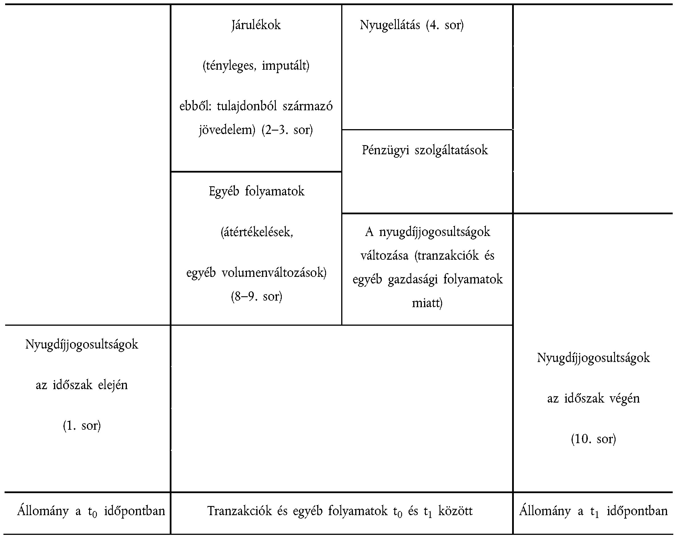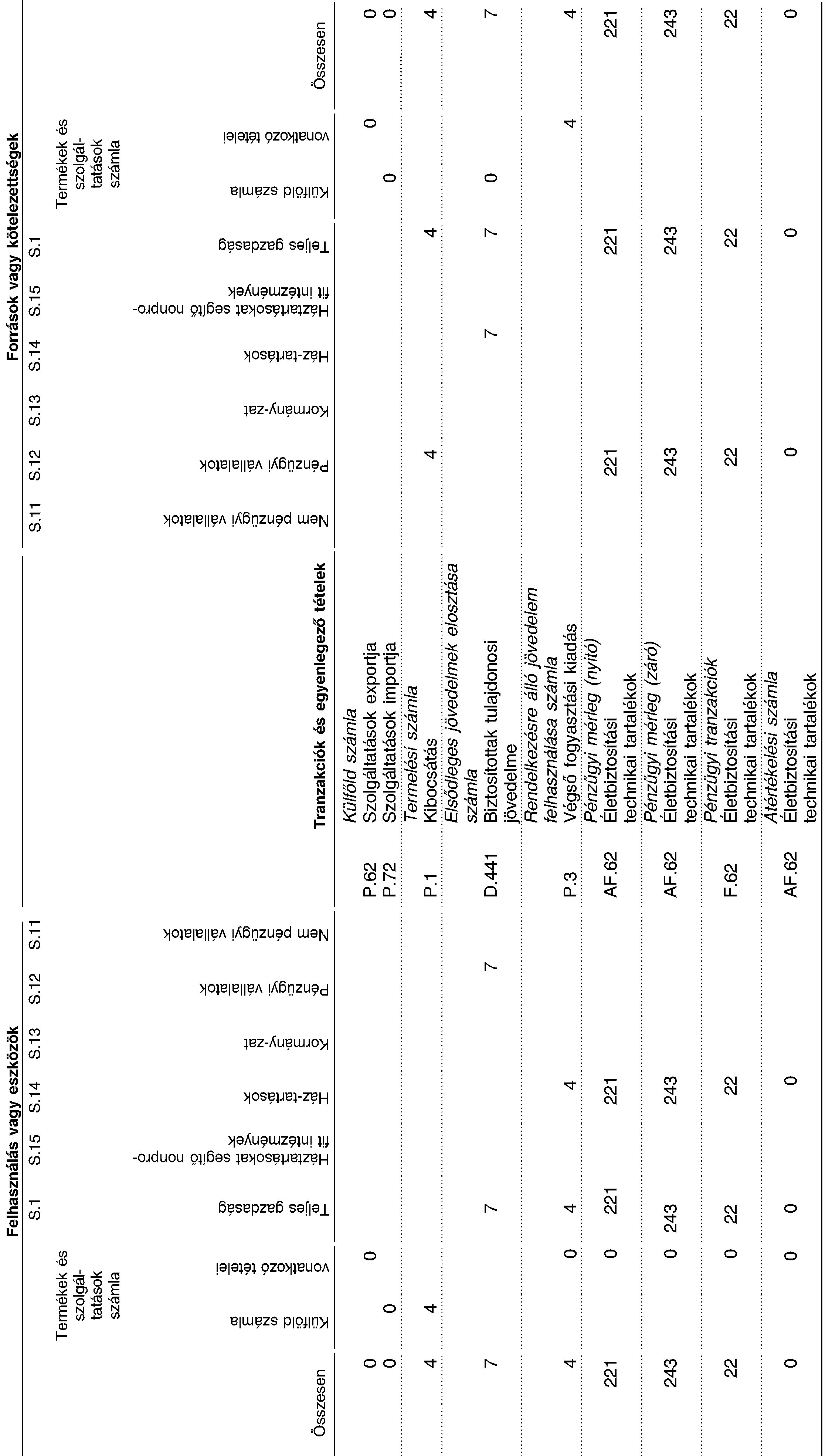 Kapcso-latok | Kód | Sor- szá-ma | Elszámolás | Fő nemzeti számlák | Nem szerepel a fő nemzeti számlákban | Nyugdíj-rendszerek összesen | Ellentételek: Nem rezidens háztartások nyugdíjjogosultságai (5) | |||||||