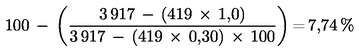 d) Az 1,0 % tannint tartalmazó cirok baromfik által metabolizálható energiája és a standard minőséggel azonos tannintartalmú cirok baromfik által metabolizálható energiája közötti különbség százalékban kifejezve (0,30 %):
