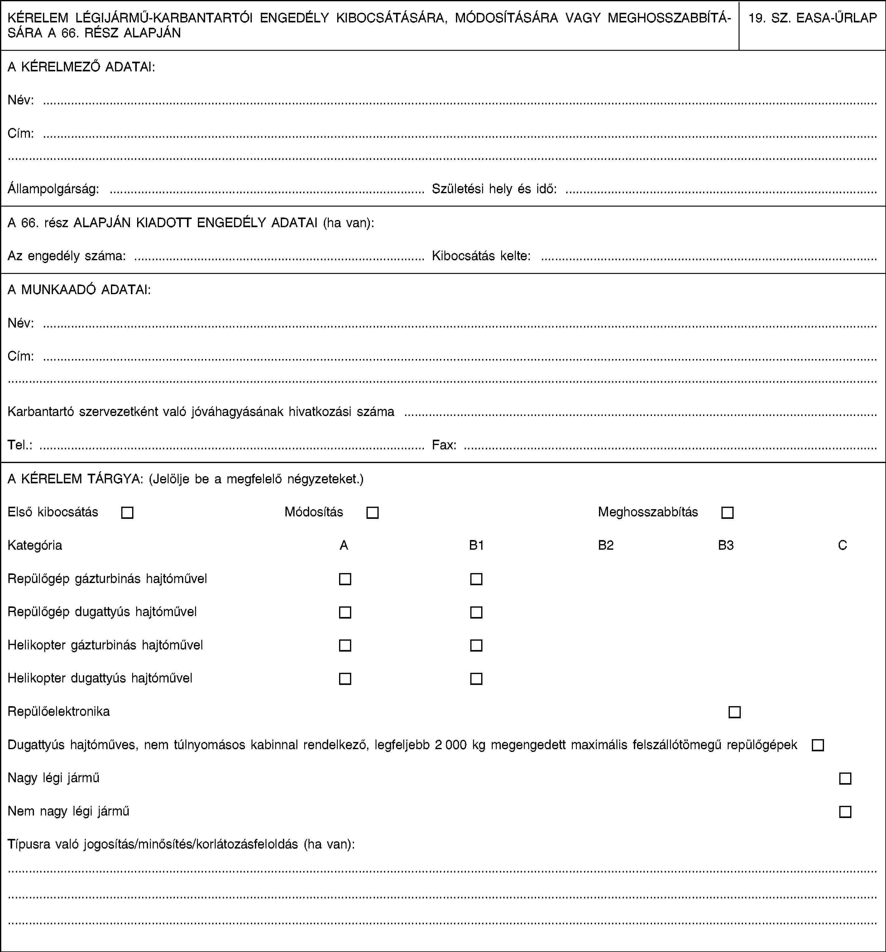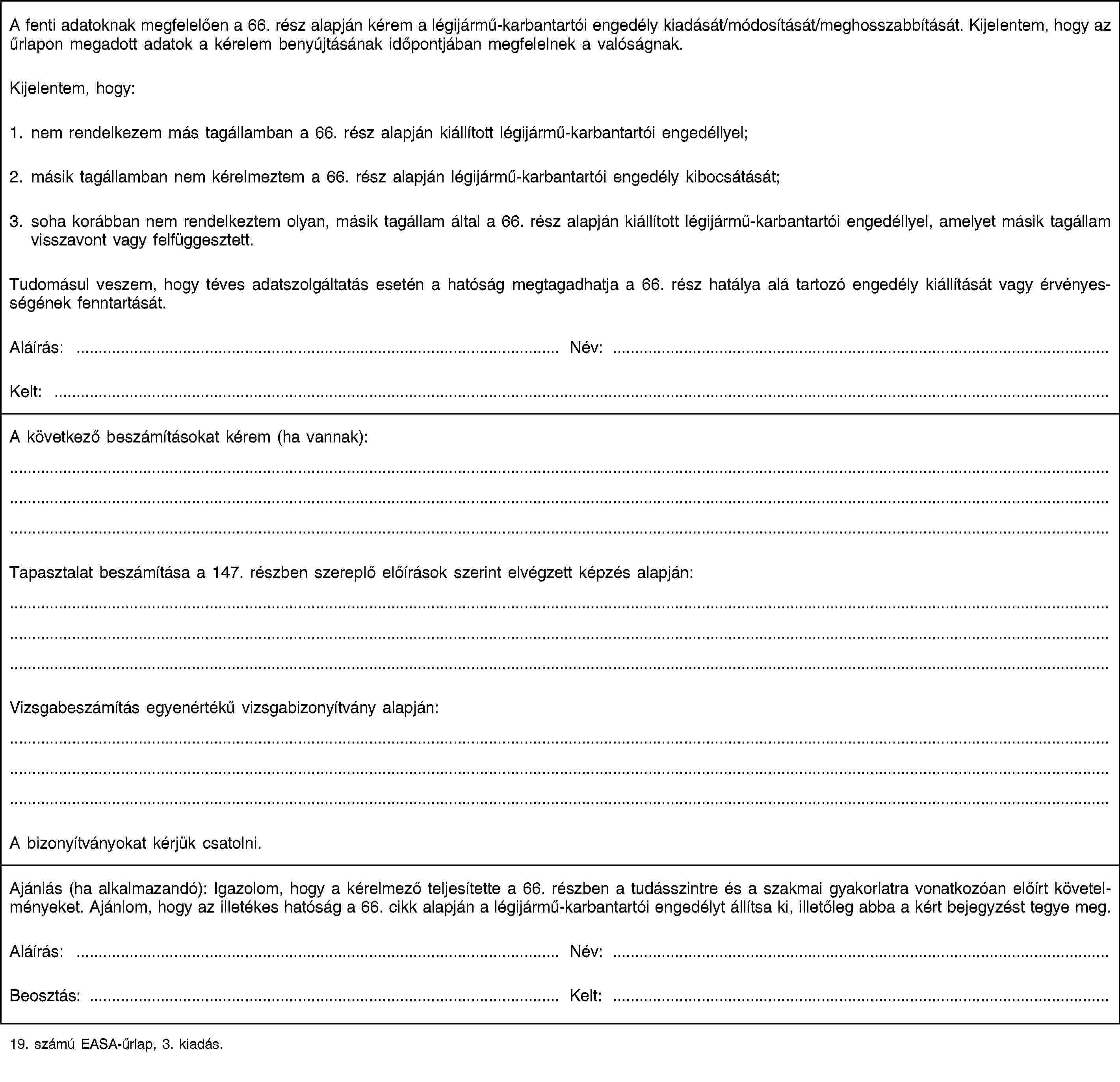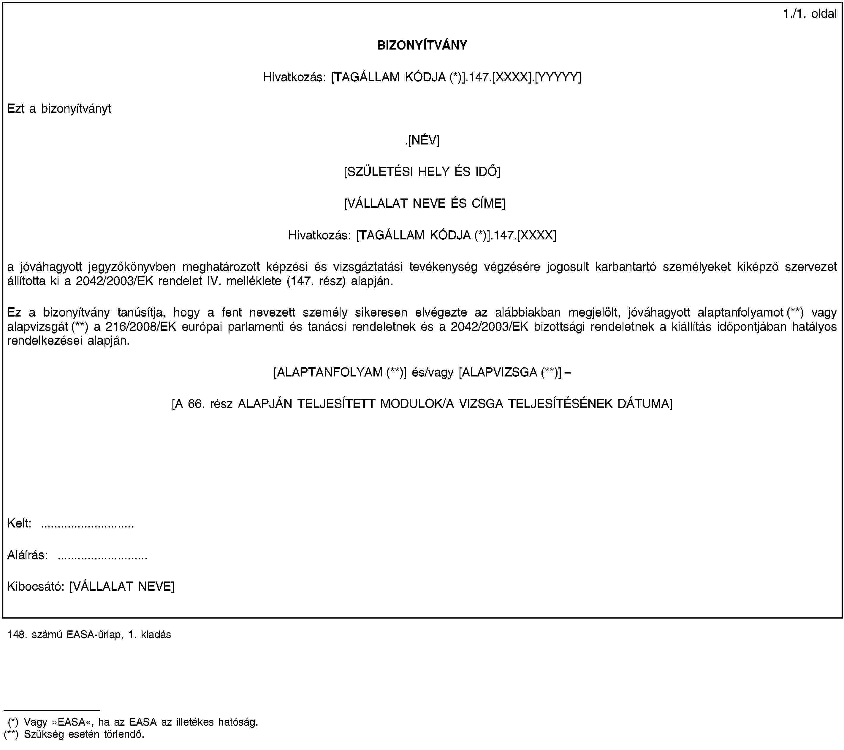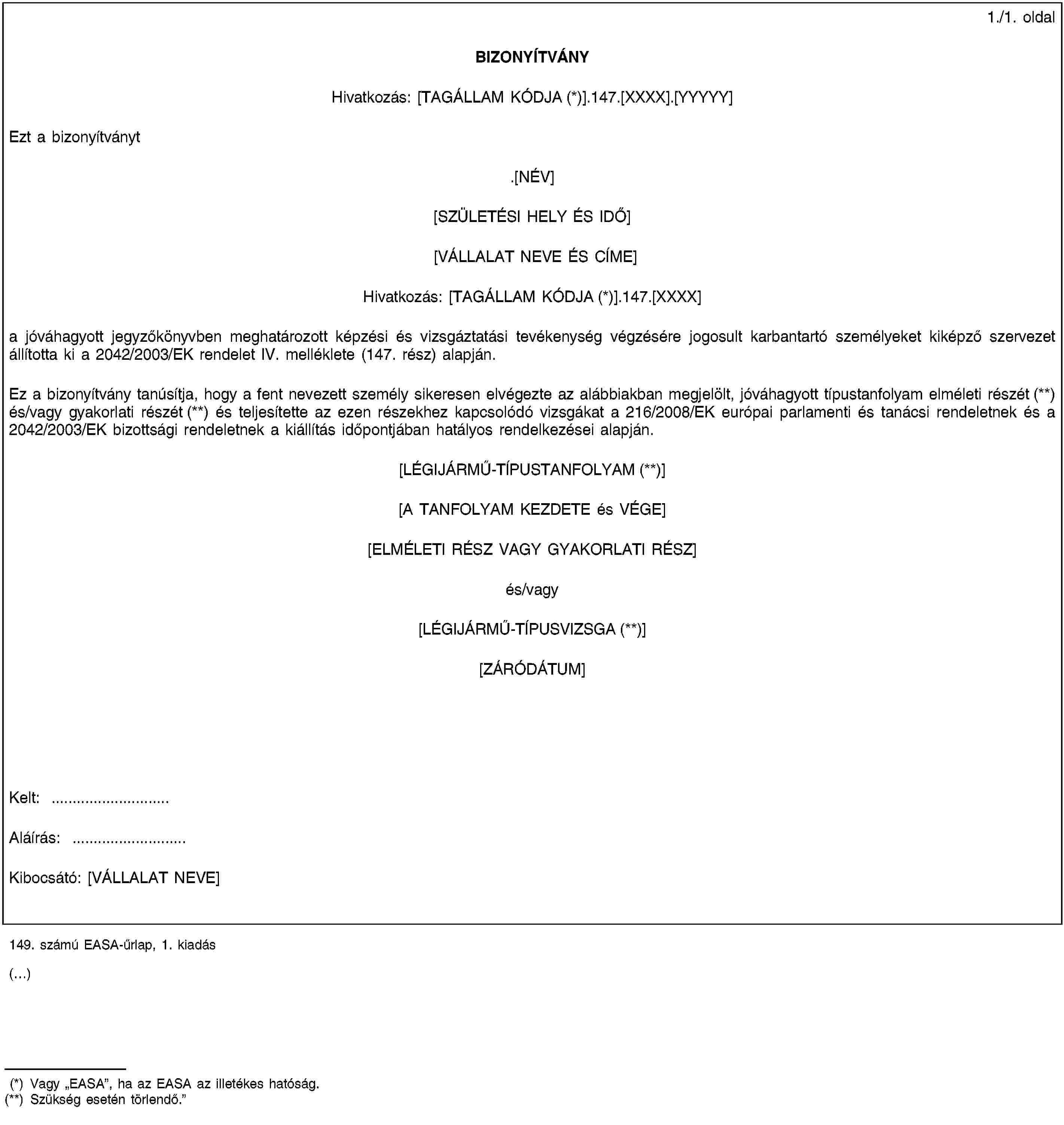 III. függelék - Bizonyítvány a IV. melléklet (147. rész) szerint - 148. és 149. számú EASA-űrlap";