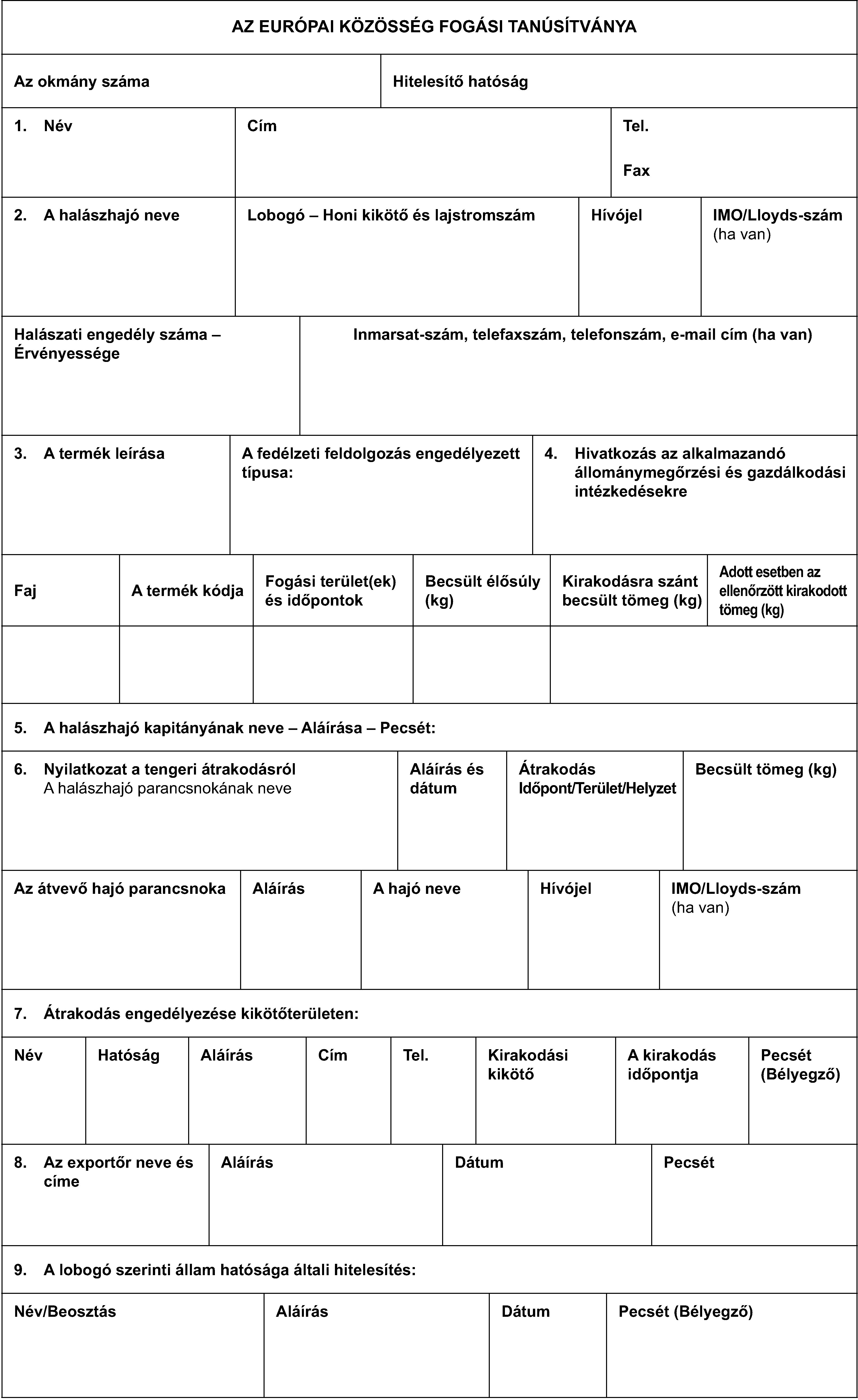 Az Európai Közösség fogási tanúsítványa és újrakiviteli bizonyítványa