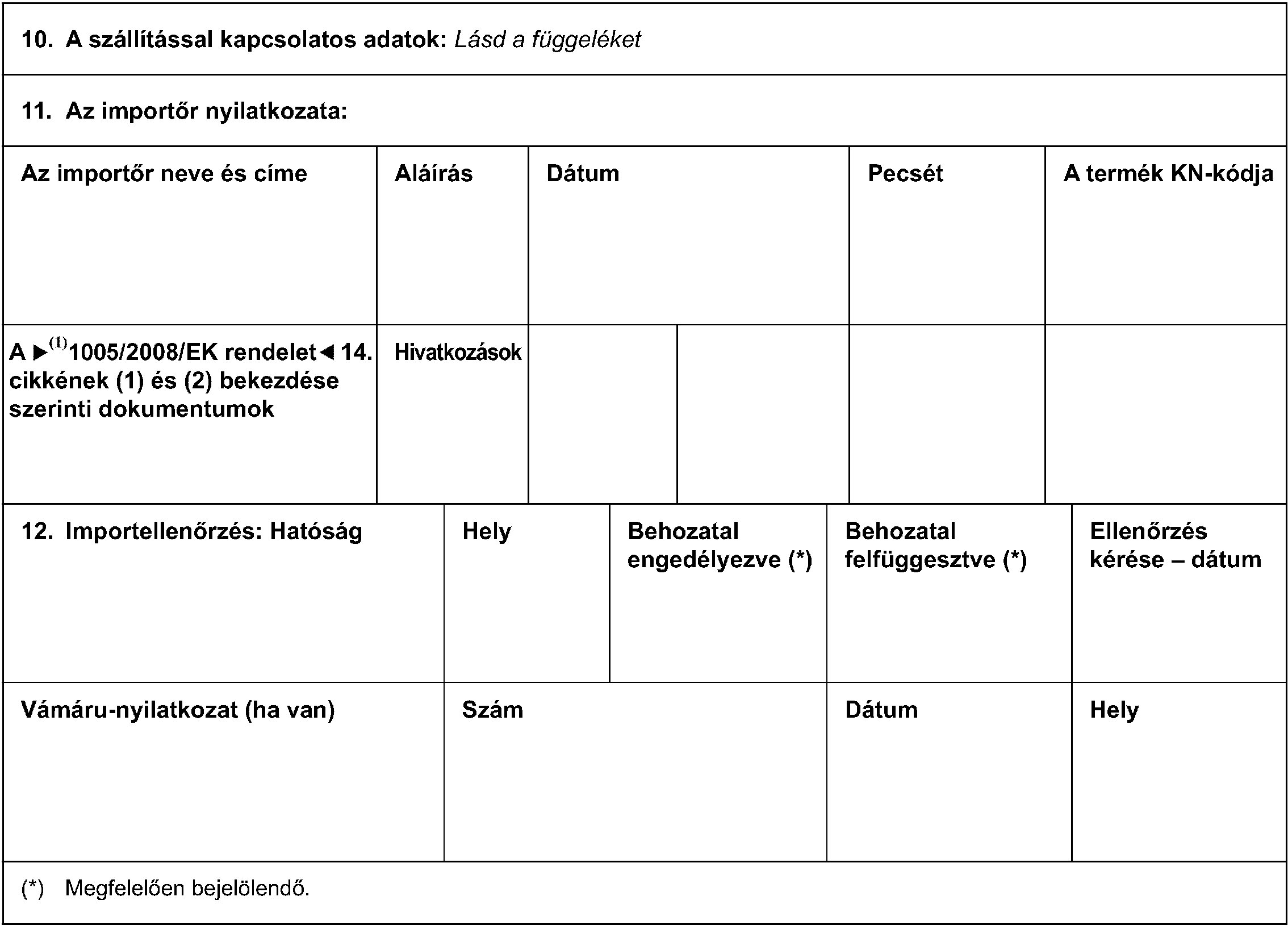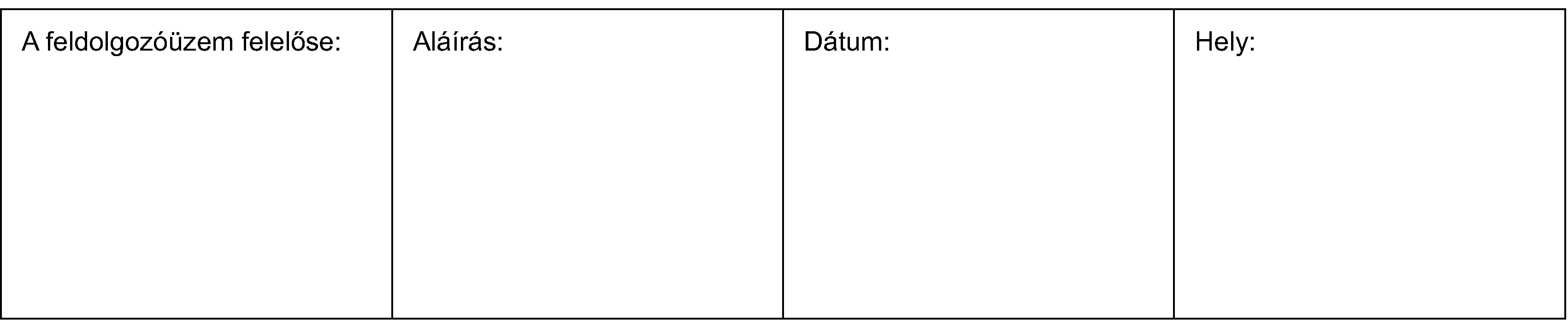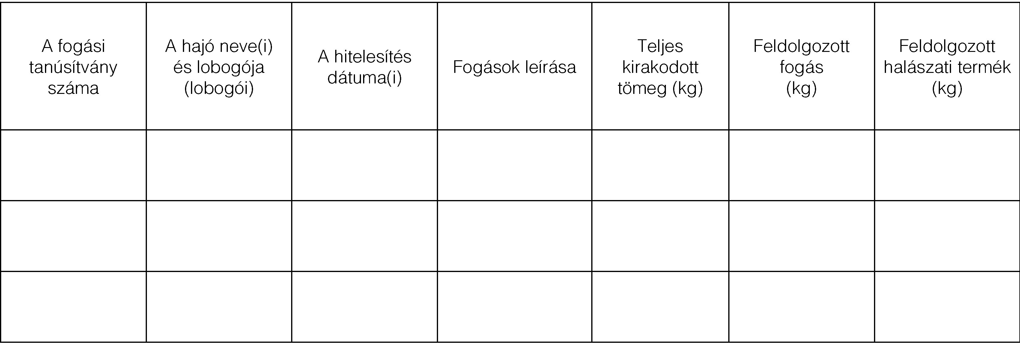 Alulírott megerősítem, hogy a következő feldolgozott halászati termékek: ...(termékleírás és KN-kód) az alábbi fogási tanúsítvány(ok) alapján behozott fogásokból származnak: