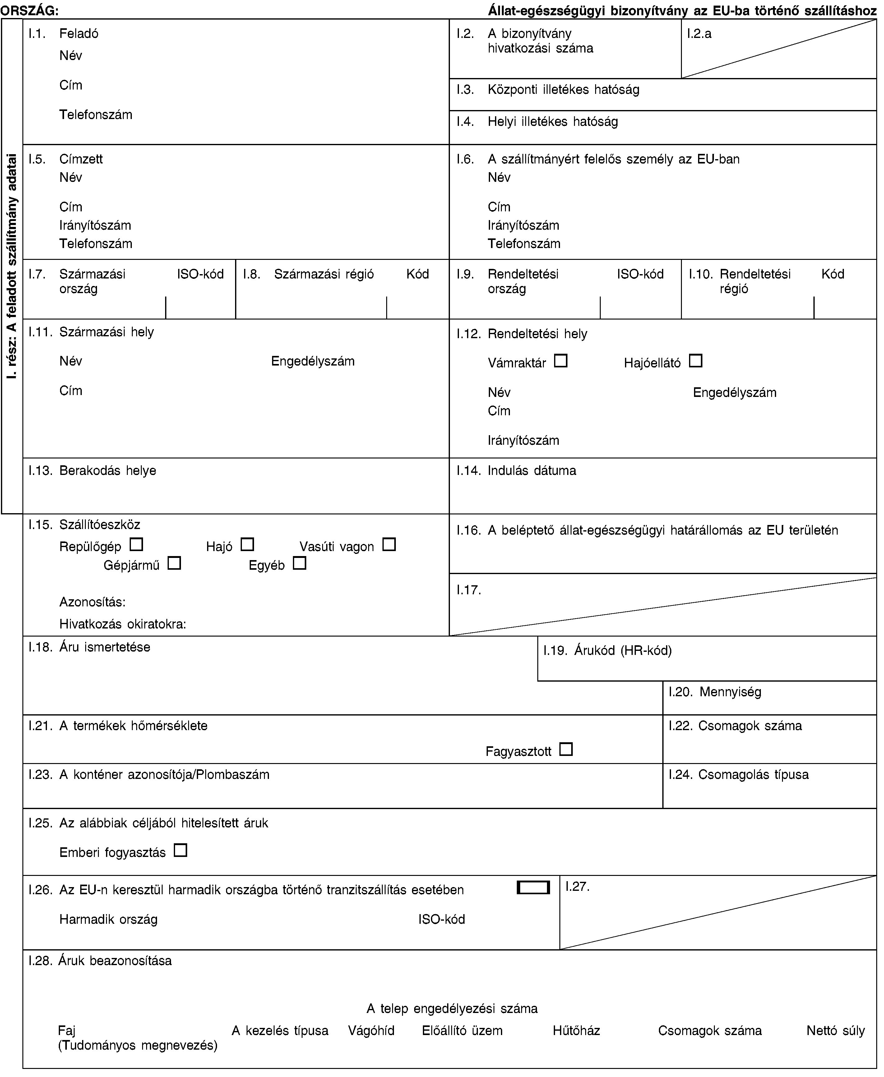 b) Az ÁEH-ért felelős hatósági állatorvos a szállítmányt kísérő és a 97/78/EK irányelv 7. cikkében említett okmányok minden oldalára rábélyegezte a "KIZÁRÓLAG AZ EK-N KERESZTÜL OROSZORSZÁGBA TÖRTÉNŐ SZÁLLÍTÁSRA" feliratot;