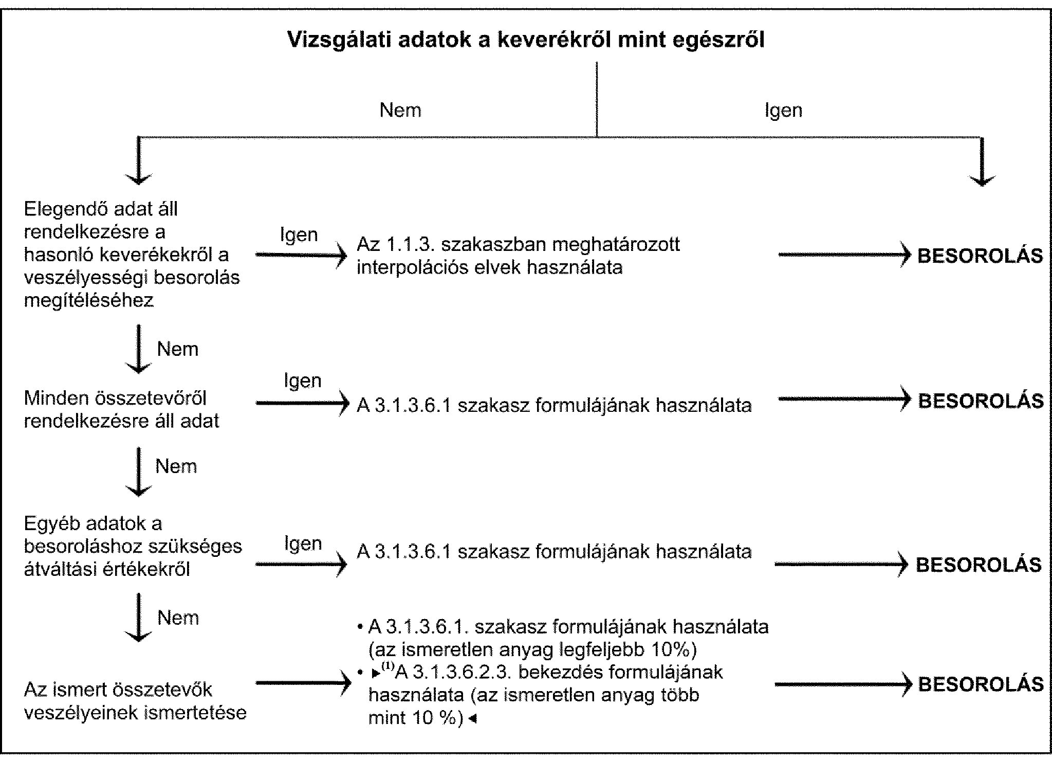 ( 5 ) Amennyiben a keverékek olyan összetevőket tartalmaznak, amelyekre nincsenek akut toxicitási adatok minden expozíciós útvonalra, akkor a rendelkezésre álló adatokból extrapolálni lehet a vonatkozó becsült akut toxicitási értékeket, és azokat lehet a megfelelő útvonalakra alkalmazni (lásd a 3.1.3.2. szakaszt). Ugyanakkor egyedi jogszabályok előírhatják a bevizsgálást egy adott útvonalra. Ezekben az esetekben a besorolást arra az útvonalra az adott jogszabályban foglalt követelmények szerint kell elvégezni.